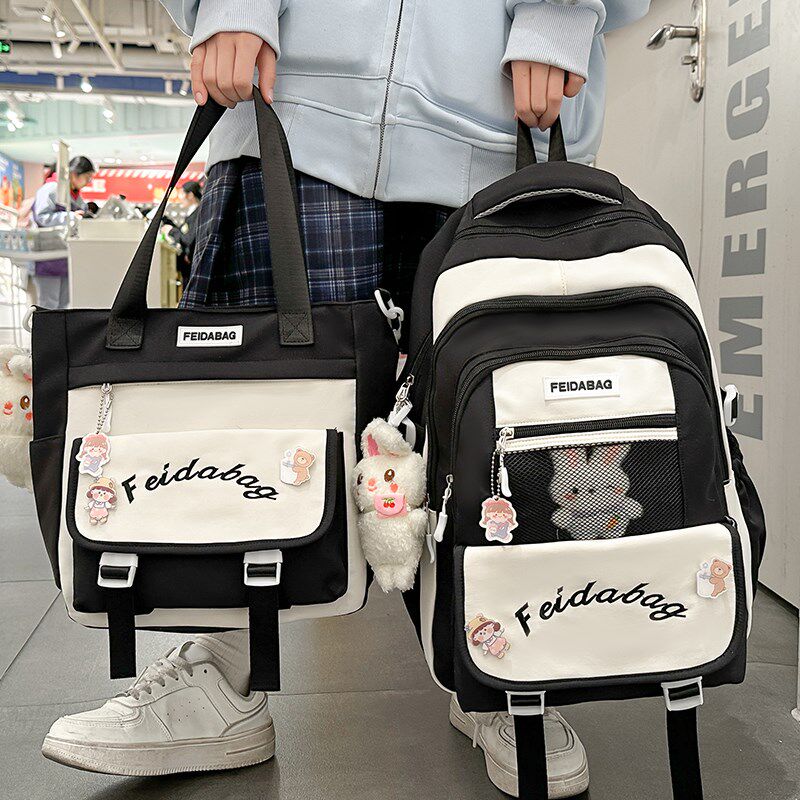 书包初中女生黑色耐脏大容量结实耐用双肩包高颜值小学生女孩背包