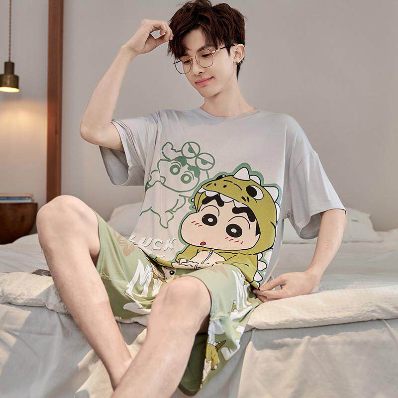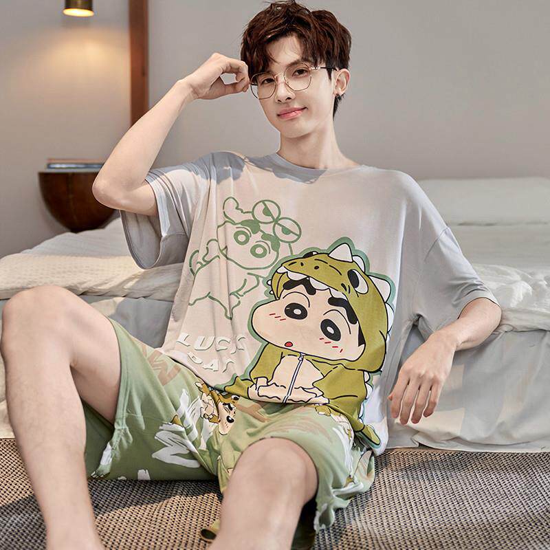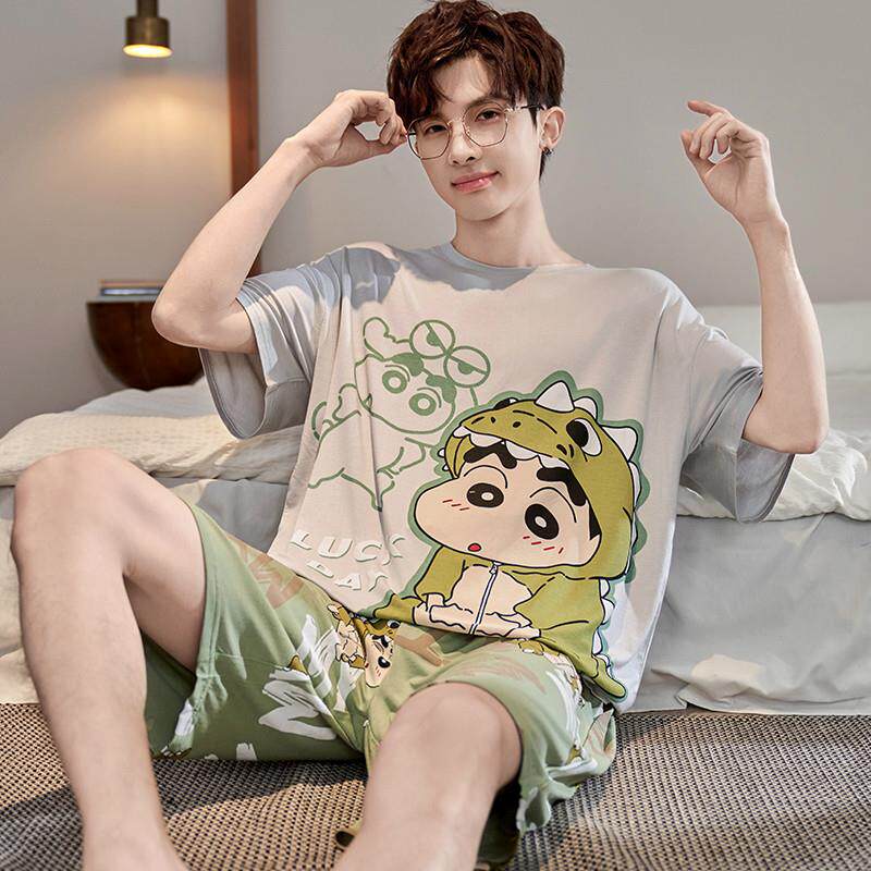 睡衣男士夏季莫代尔短袖薄款冰丝青少年男孩初中学生大童大码套装