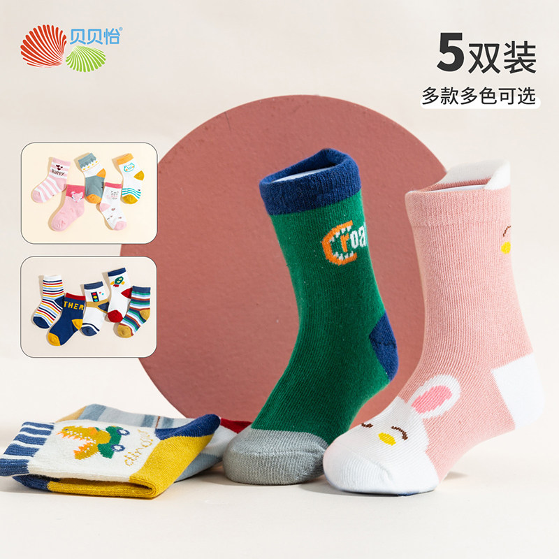 贝贝怡男女童袜子春秋款棉儿童袜子中筒袜秋天棉袜宝宝夏季薄款