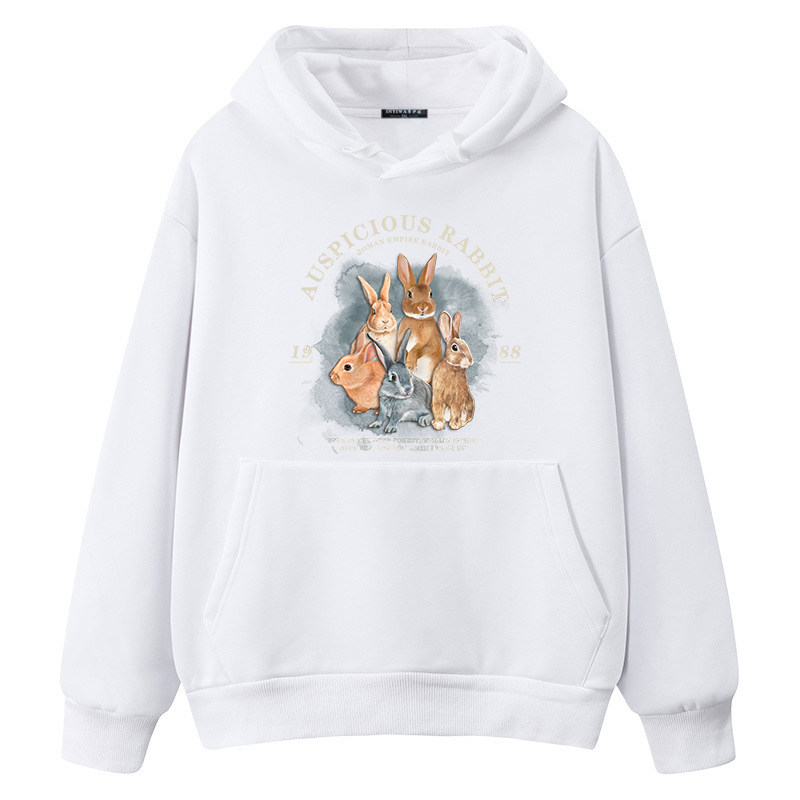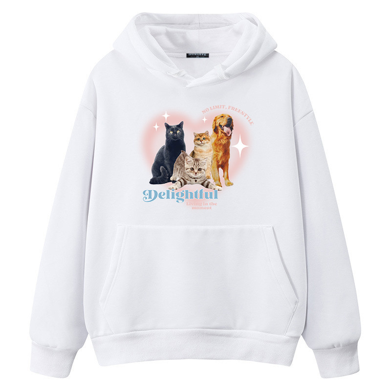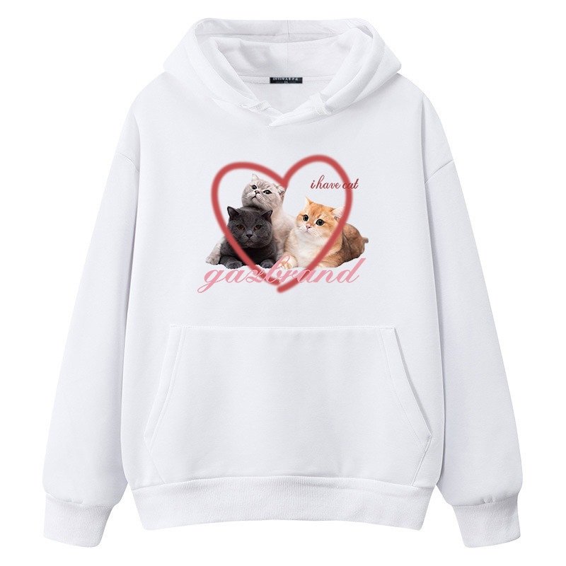 白色连帽卫衣外套男款2026新款卡通潮牌小猫春秋季青少年宽松帽衫