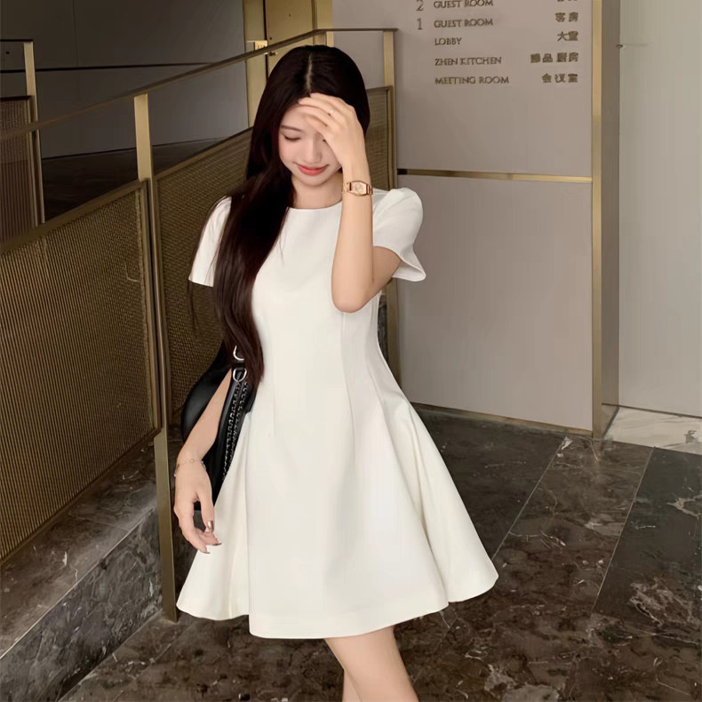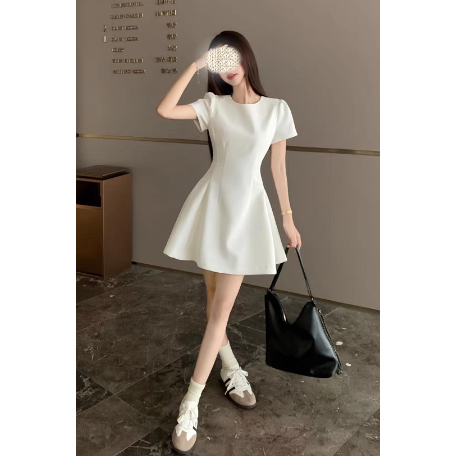 白色连衣裙女夏小个子高级感生日礼服裙收腰显瘦毕业小白裙子短款