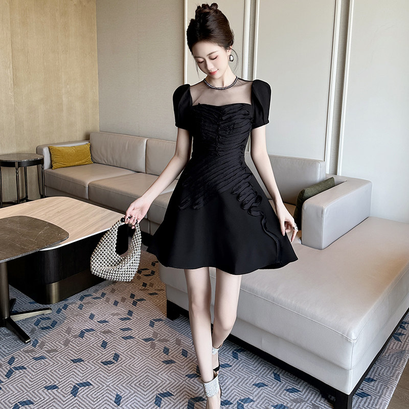 夏季白色法式短款高级感礼服裙设计感小个子女装收腰时尚连衣裙