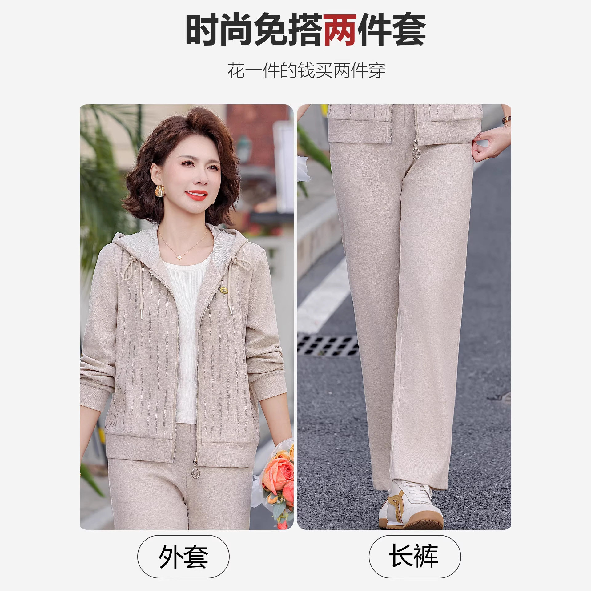 妈妈春装运动套装时尚洋气2026新款今年流行中老年休闲外套女春秋