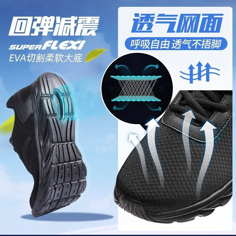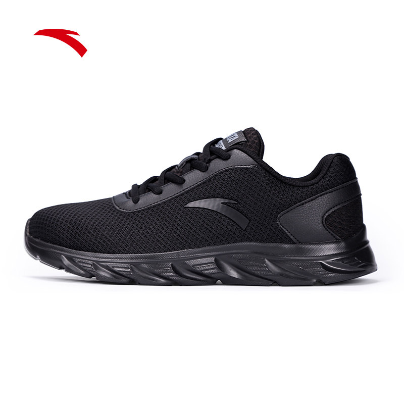 安踏男鞋网面透气工作全黑跑步鞋春季减震耐磨跑鞋轻便通勤运动鞋