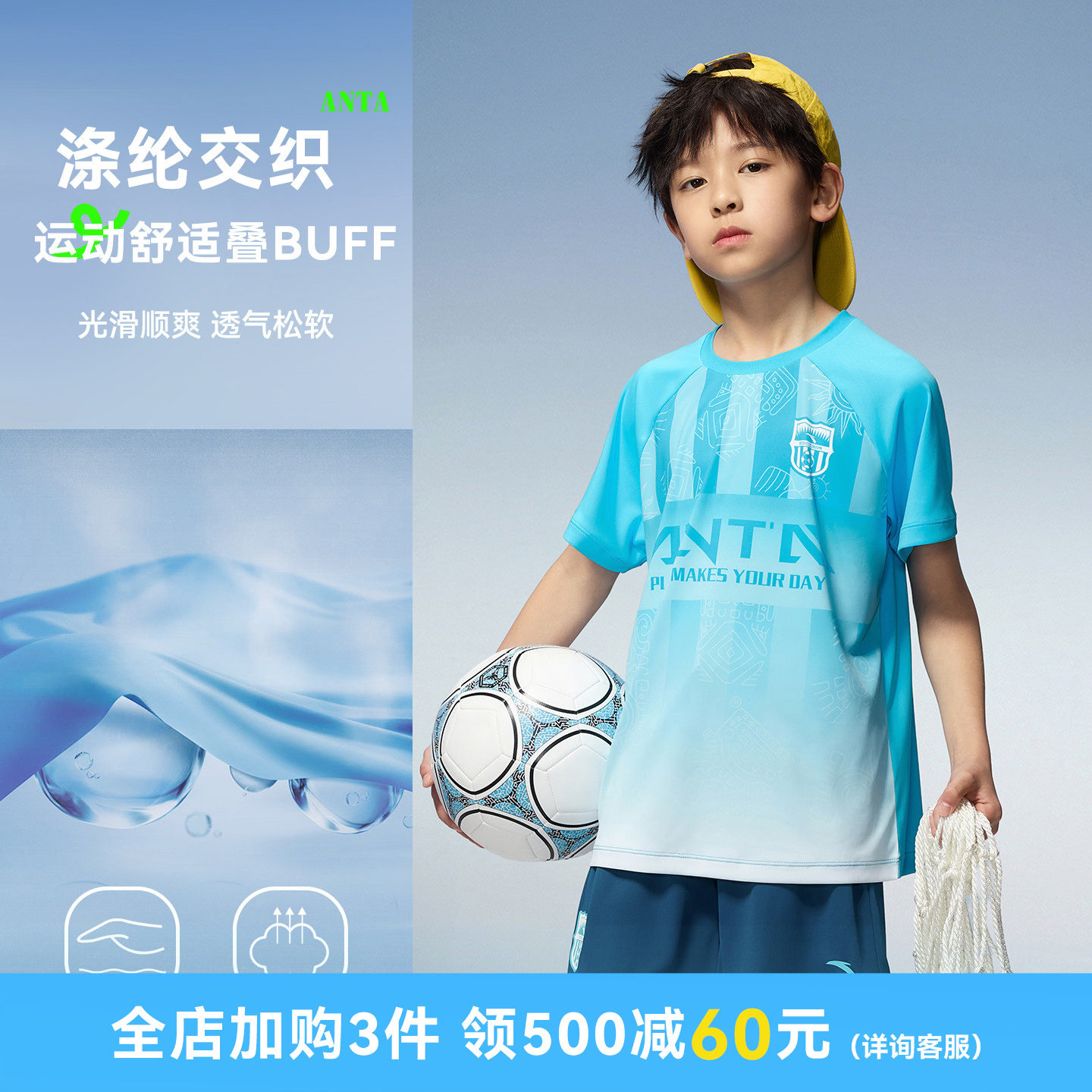 安踏儿童足球服男童套装夏装2026短袖T恤短裤运动两件套透气童装