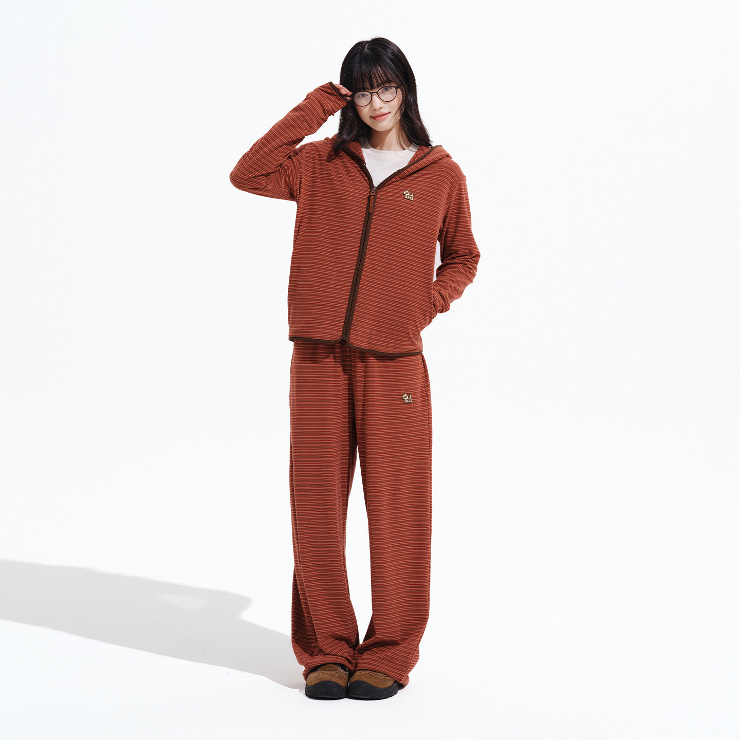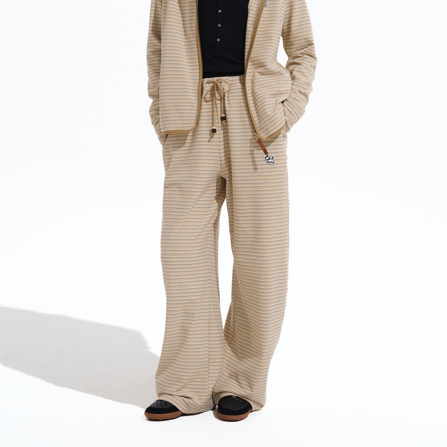 PSO Brand女装可爱小狗撞色条纹直筒红色卫裤女款阔腿休闲裤子