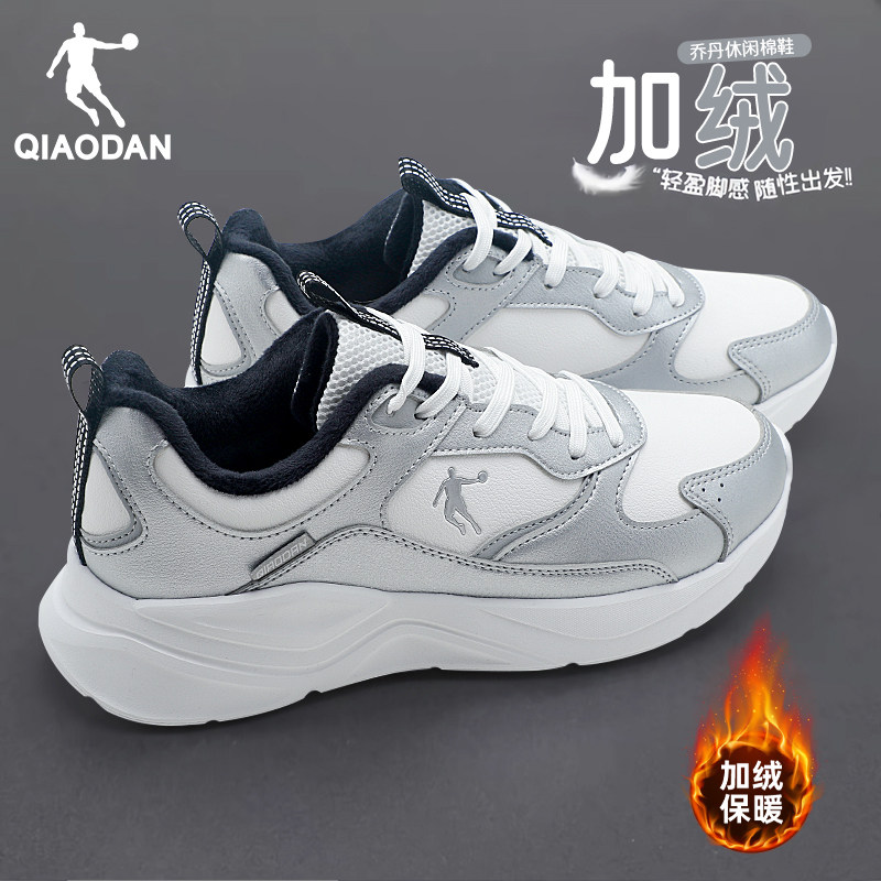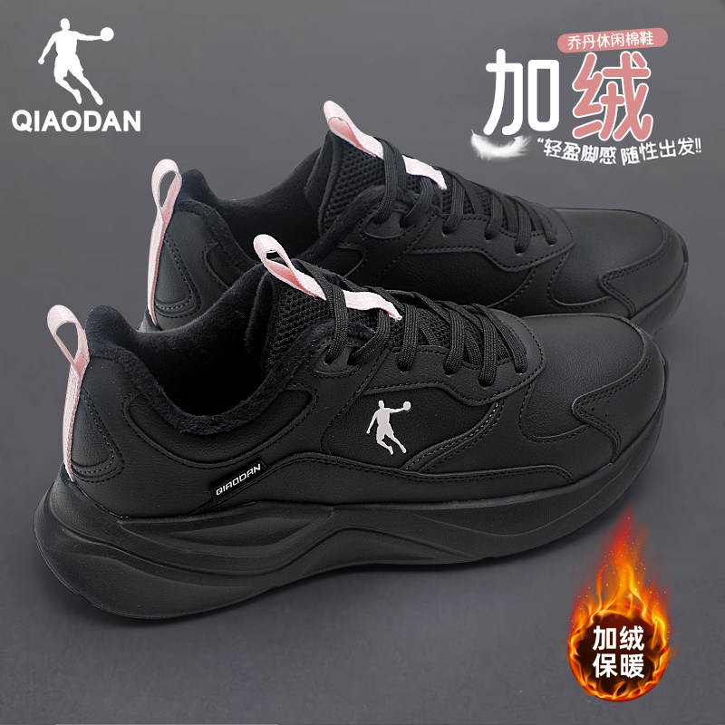 乔丹加绒运动鞋女鞋2025新款冬季保暖皮面棉鞋休闲官方正品跑步鞋