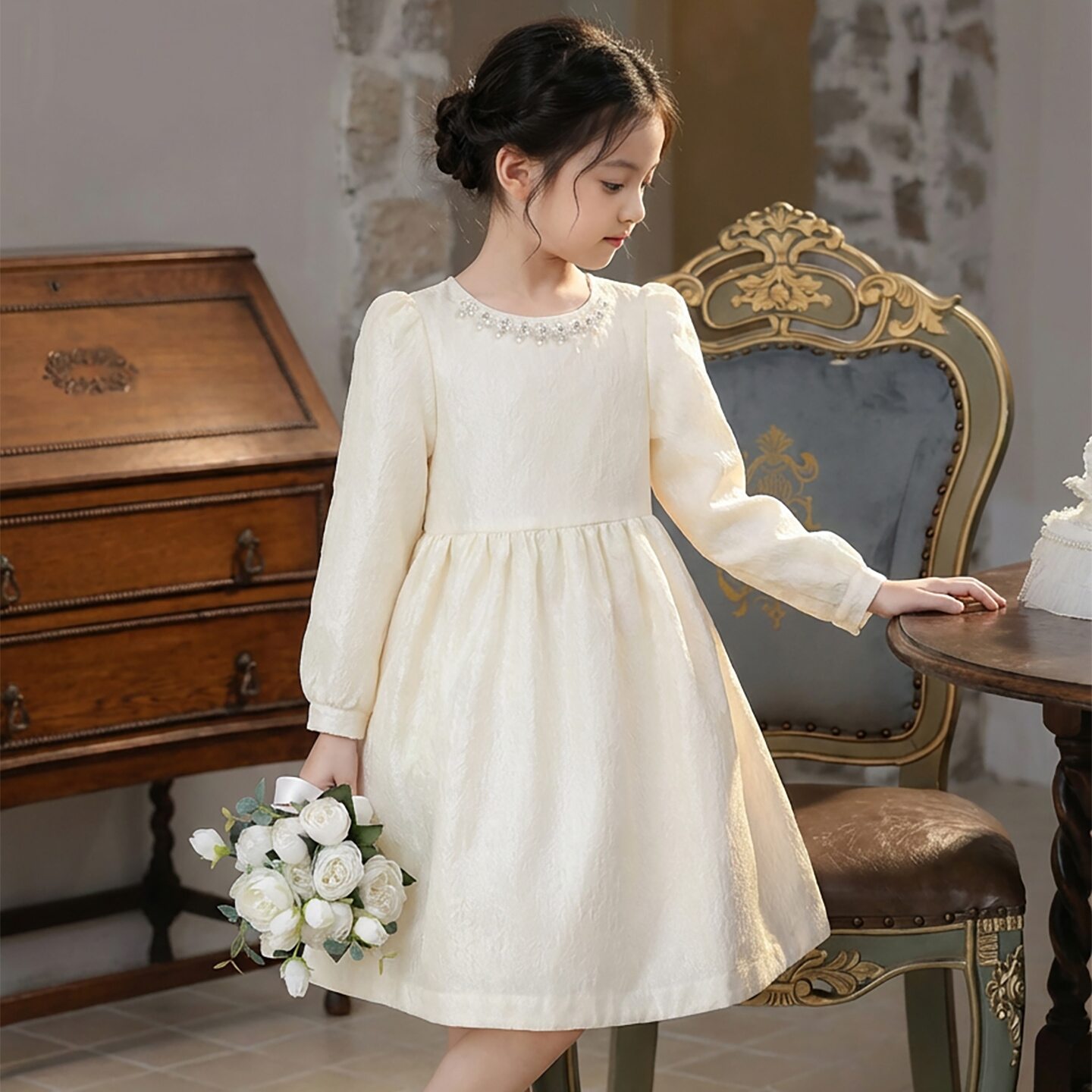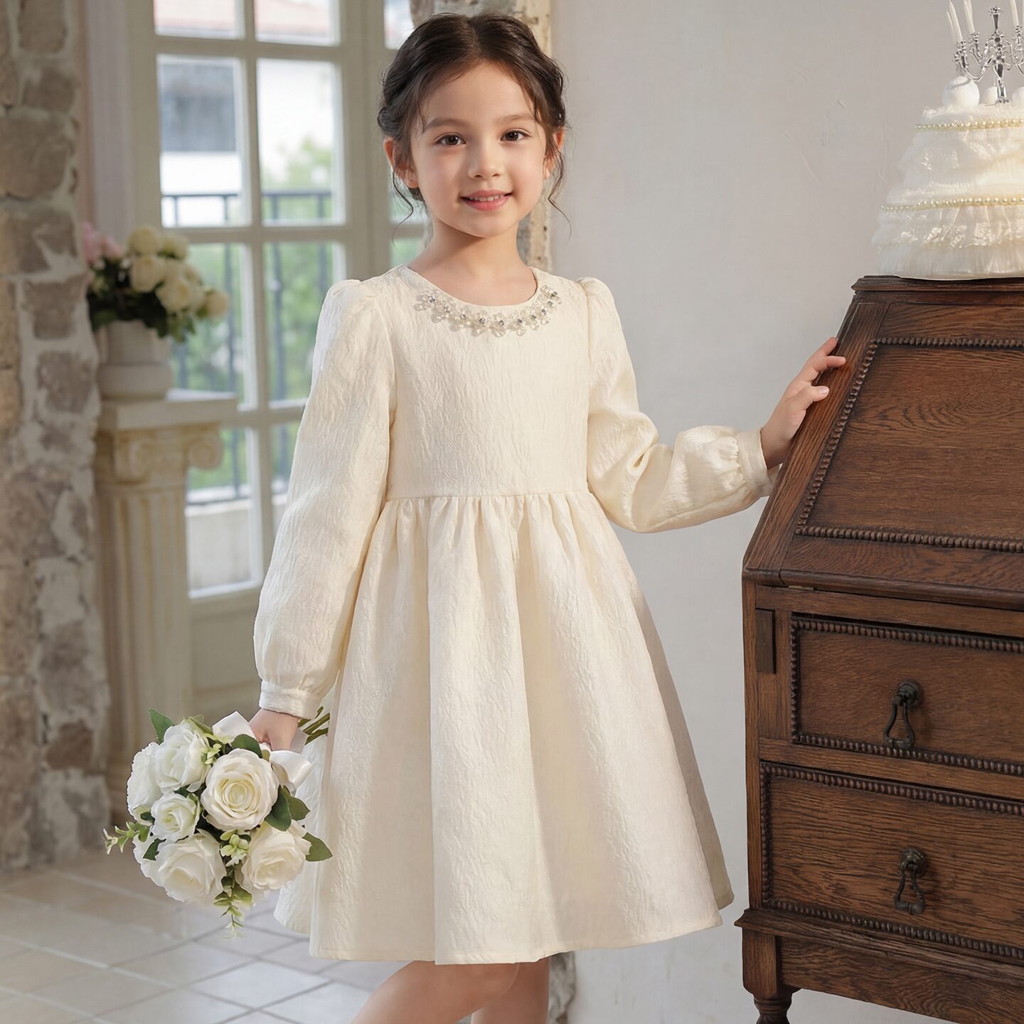 女童连衣裙春季2026新款女孩生日洋气公主裙儿童长袖礼服春装裙子