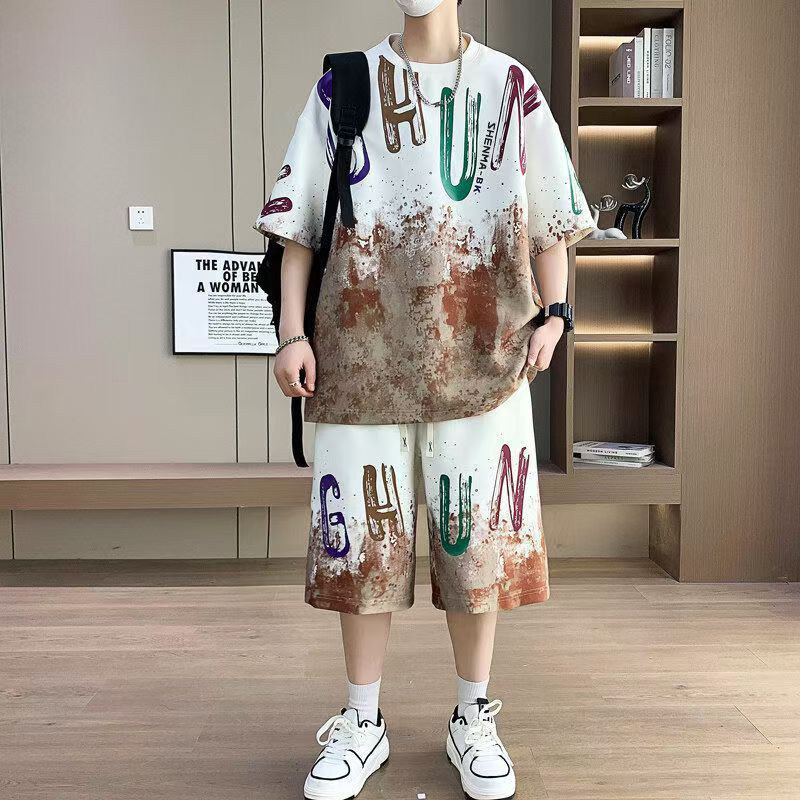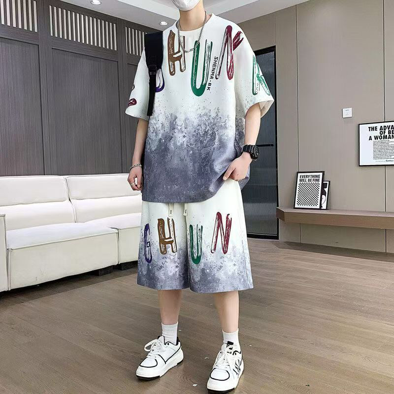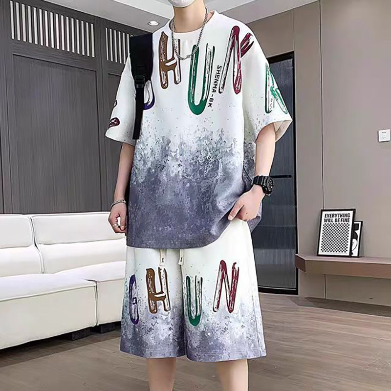 夏季凉感t恤短袖套装男短裤t恤两件套男青少年大码运动休闲套装男