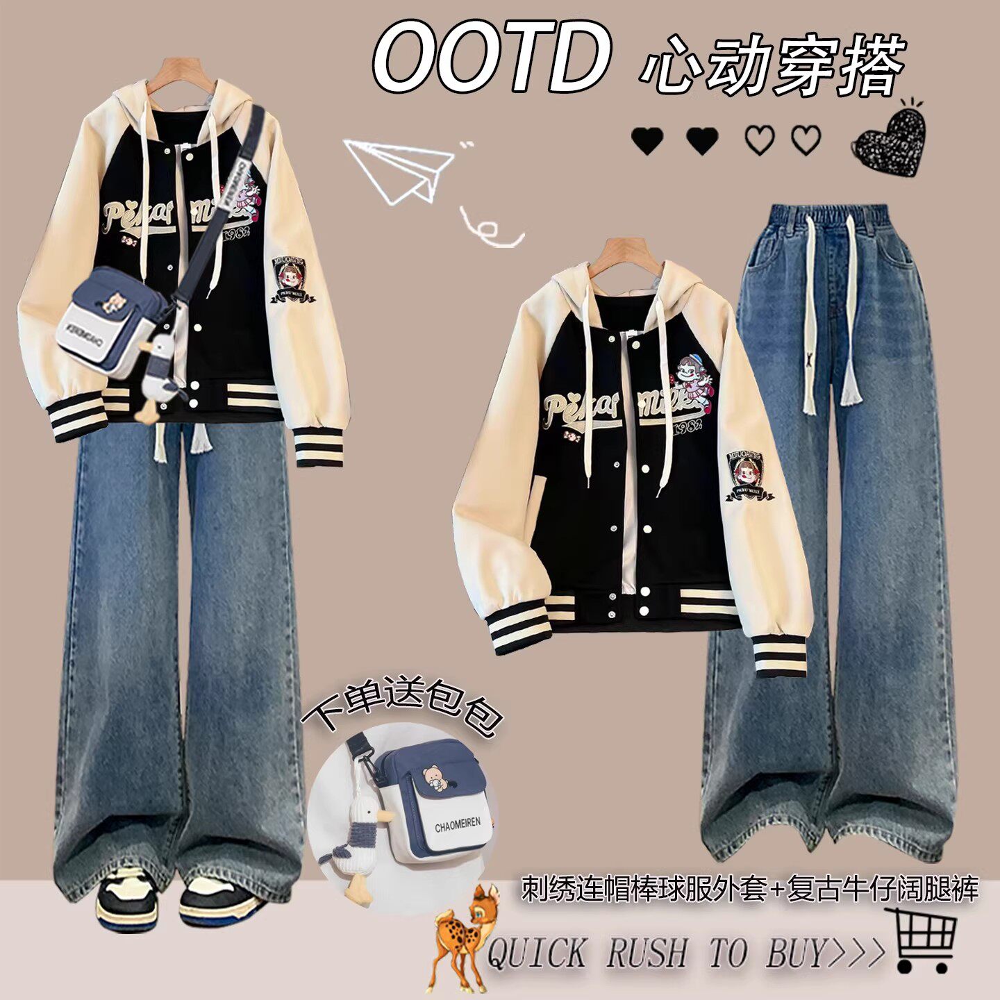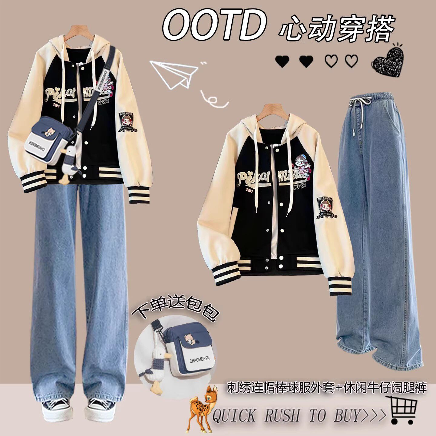 初中生学院风穿搭一整套少女2026春装新款高中学生连帽棒球服外套