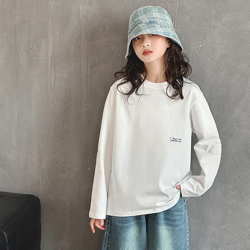 女童T恤2025春装新款中大童初中生长袖上衣儿童学生休闲打底衫潮