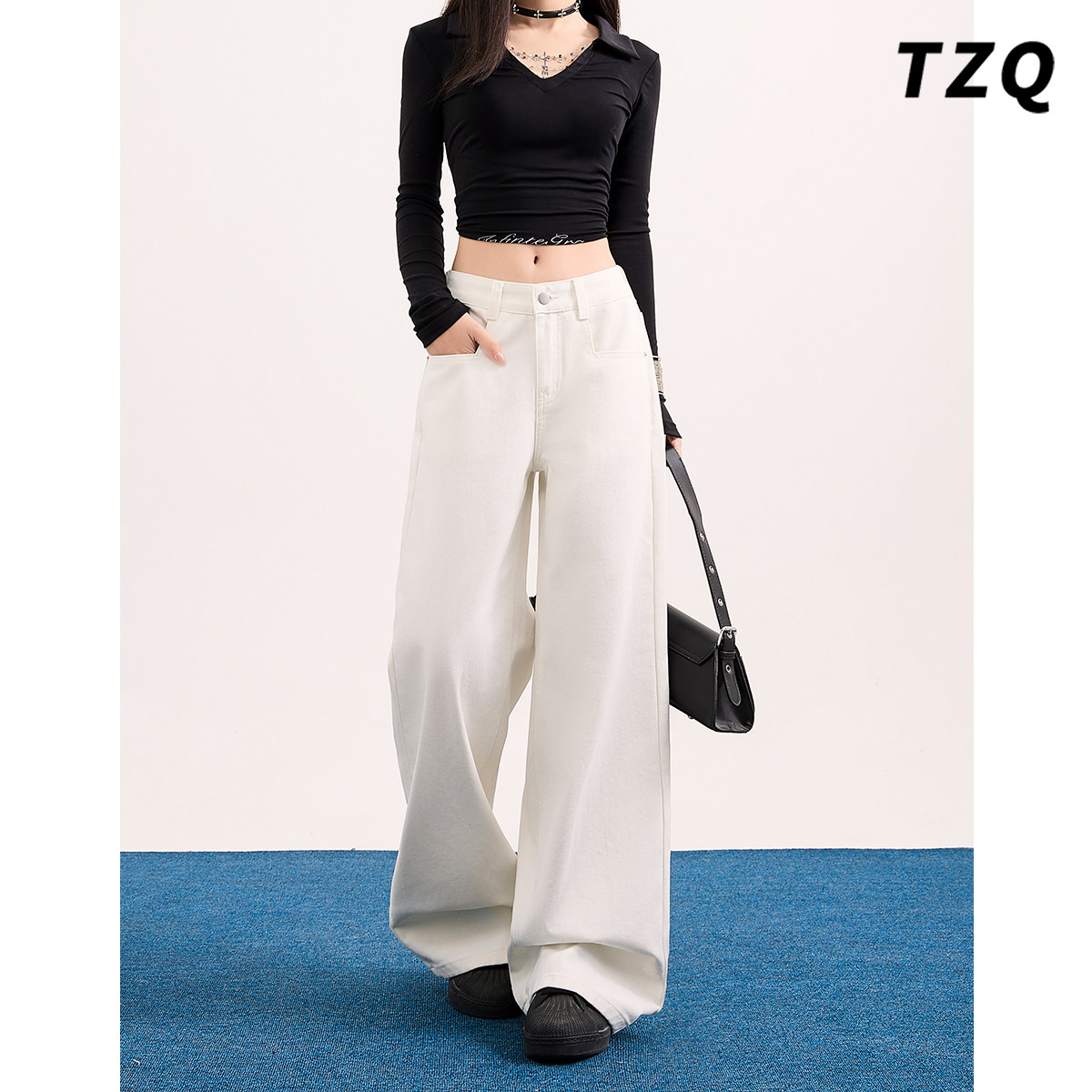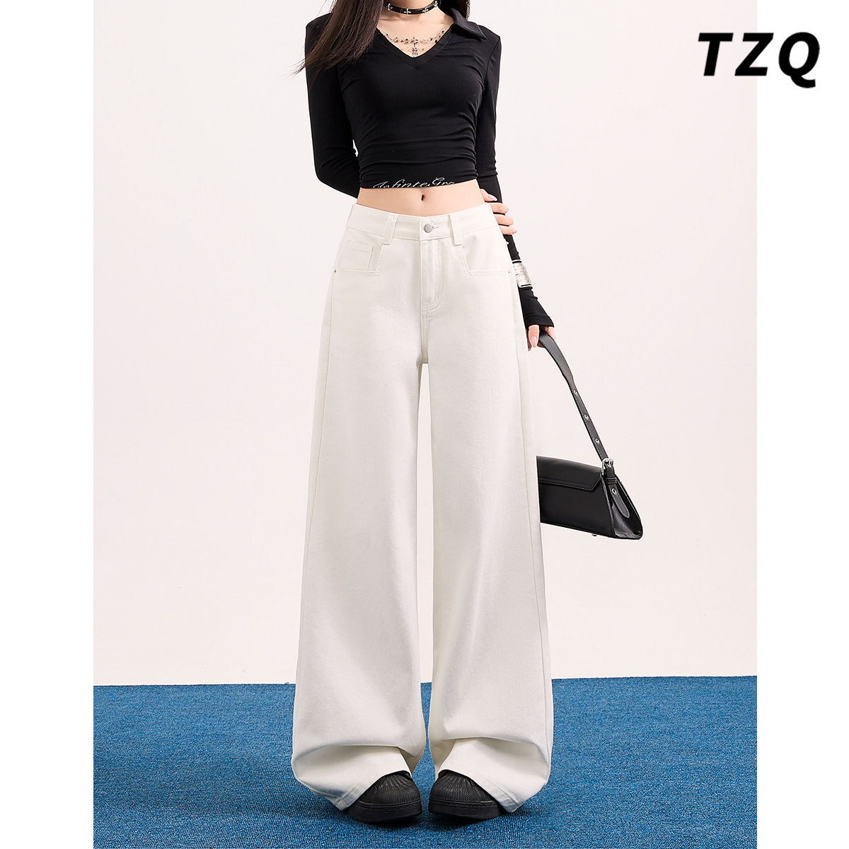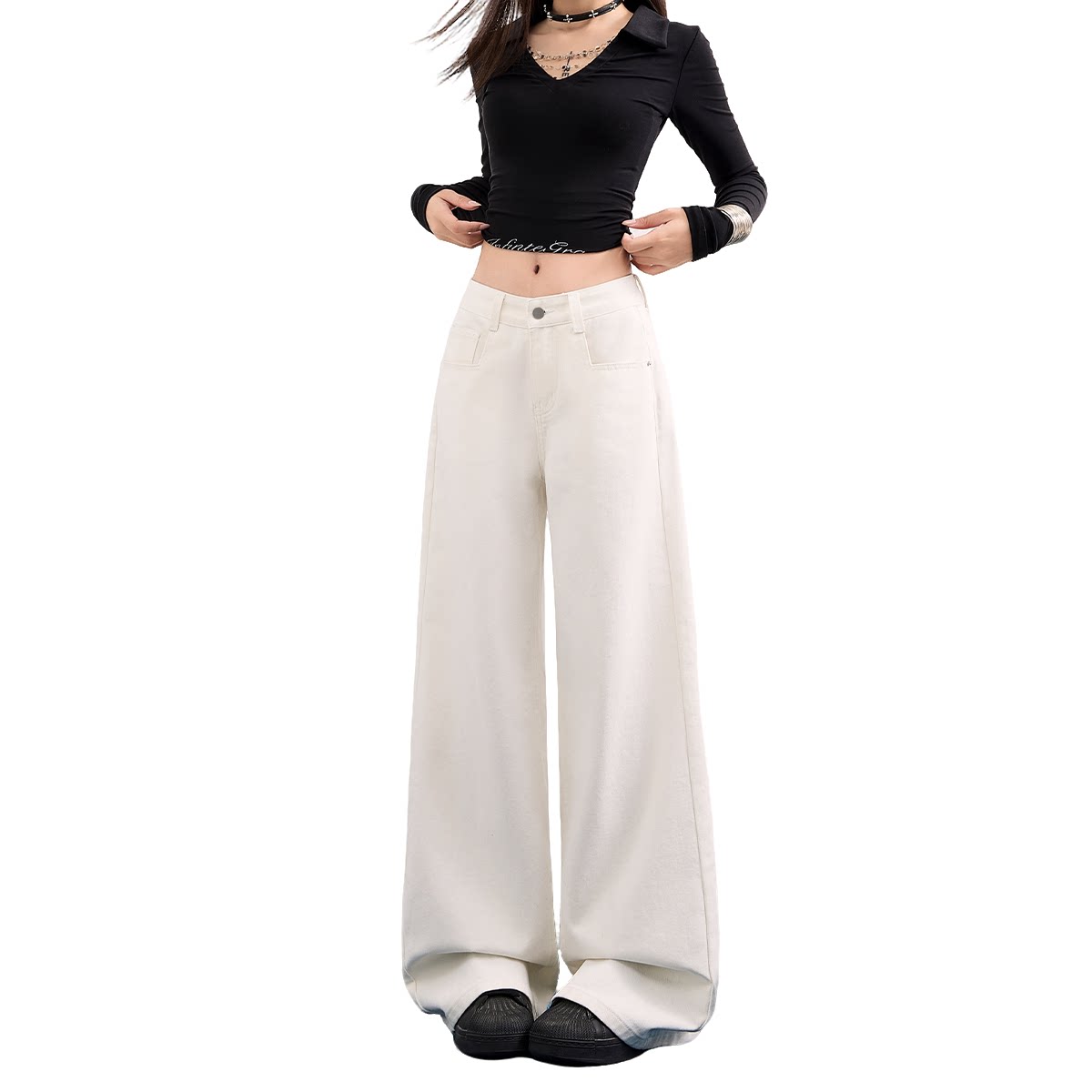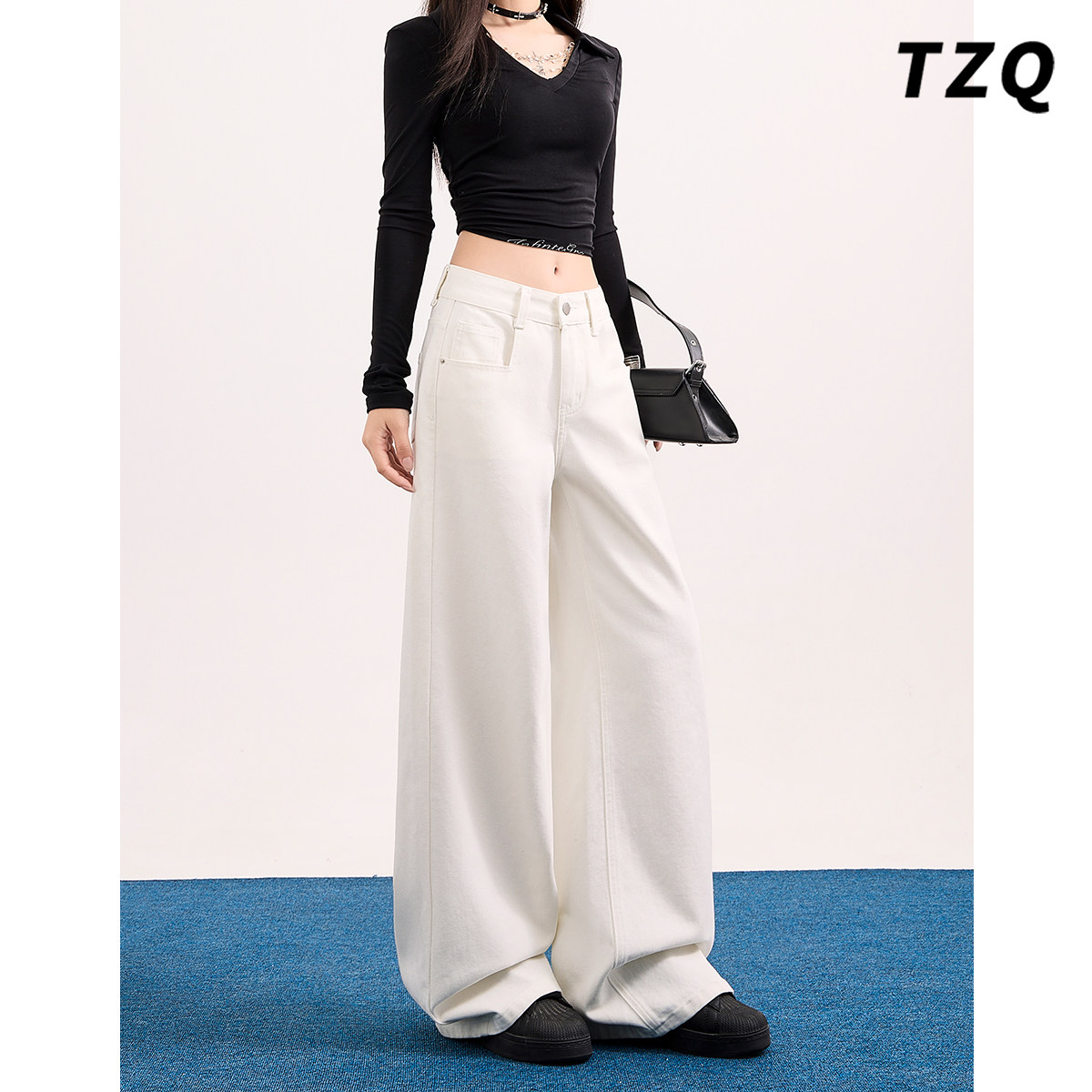 白色小个子阔腿牛仔裤女2026春季新款低腰百搭宽松直筒垂感拖地裤