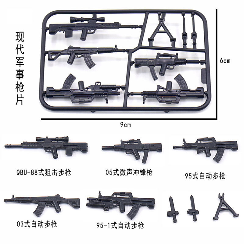 现代军事人仔积木武器特警自动步枪狙击步枪冲锋枪配件拼装男玩具