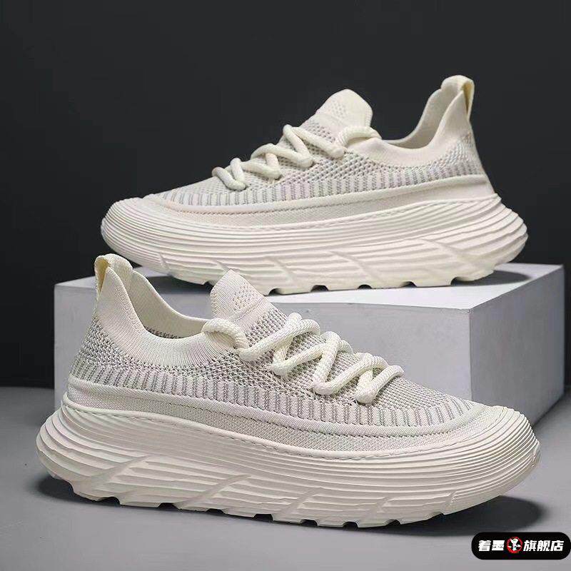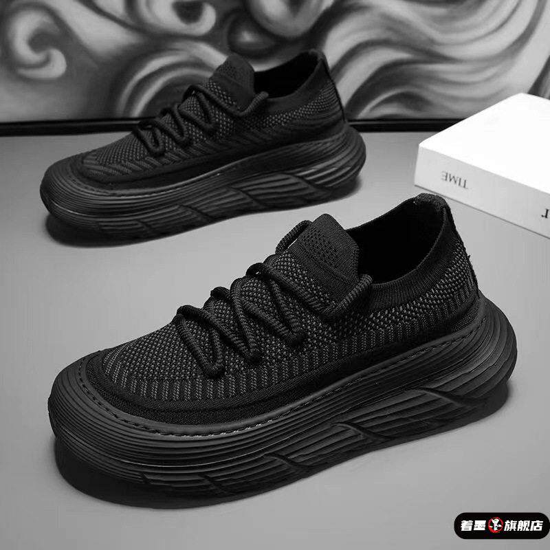 男士轻便透气防臭网鞋男鞋夏季新款飞织网面休闲一脚蹬软厚底运动