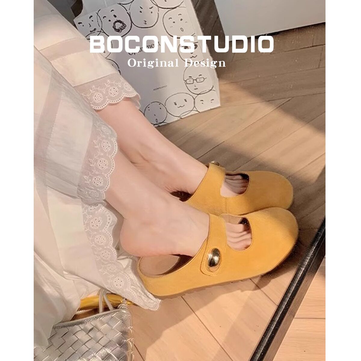 小金豆红色勃肯鞋女夏外穿内增高包头半拖鞋真皮厚底玛丽珍凉拖鞋