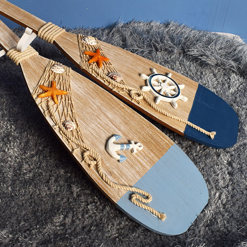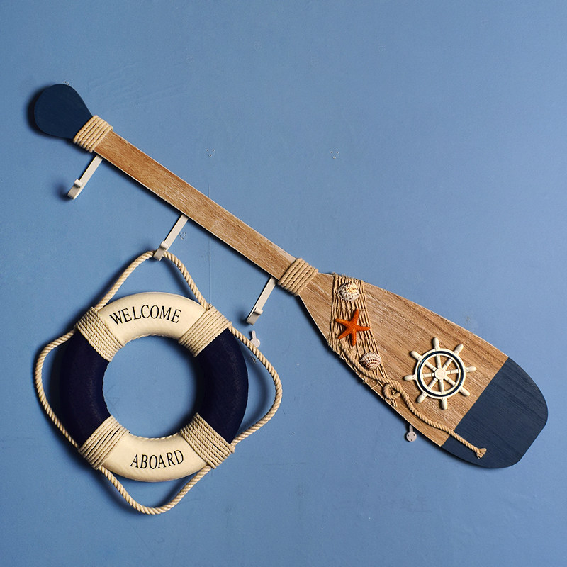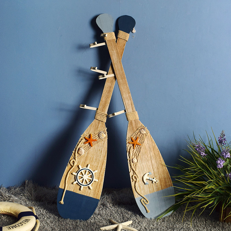 地中海风格复古做旧船桨挂钩墙面装饰挂件儿童房客背景墙