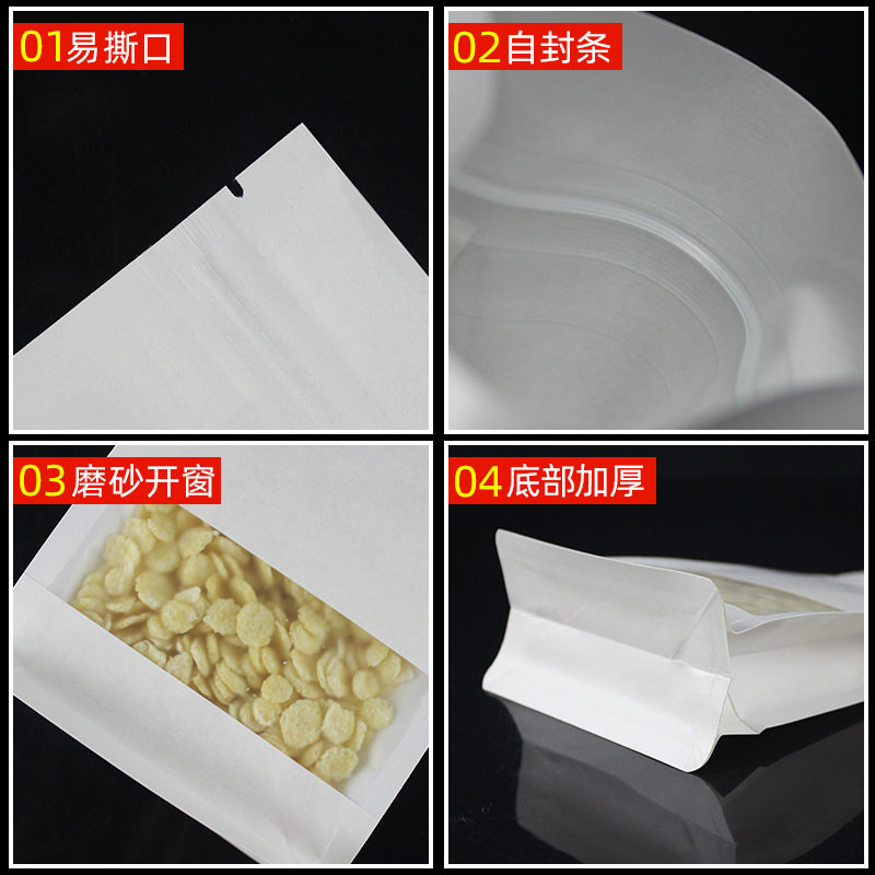 白色牛皮纸袋八边封自封袋虾干包装袋干果袋狗粮自立袋全套样品