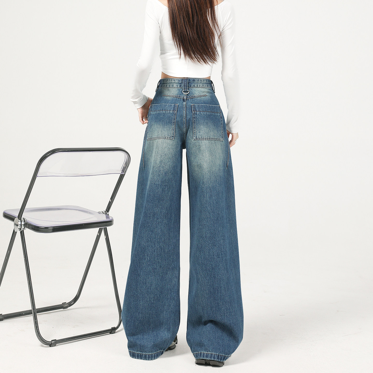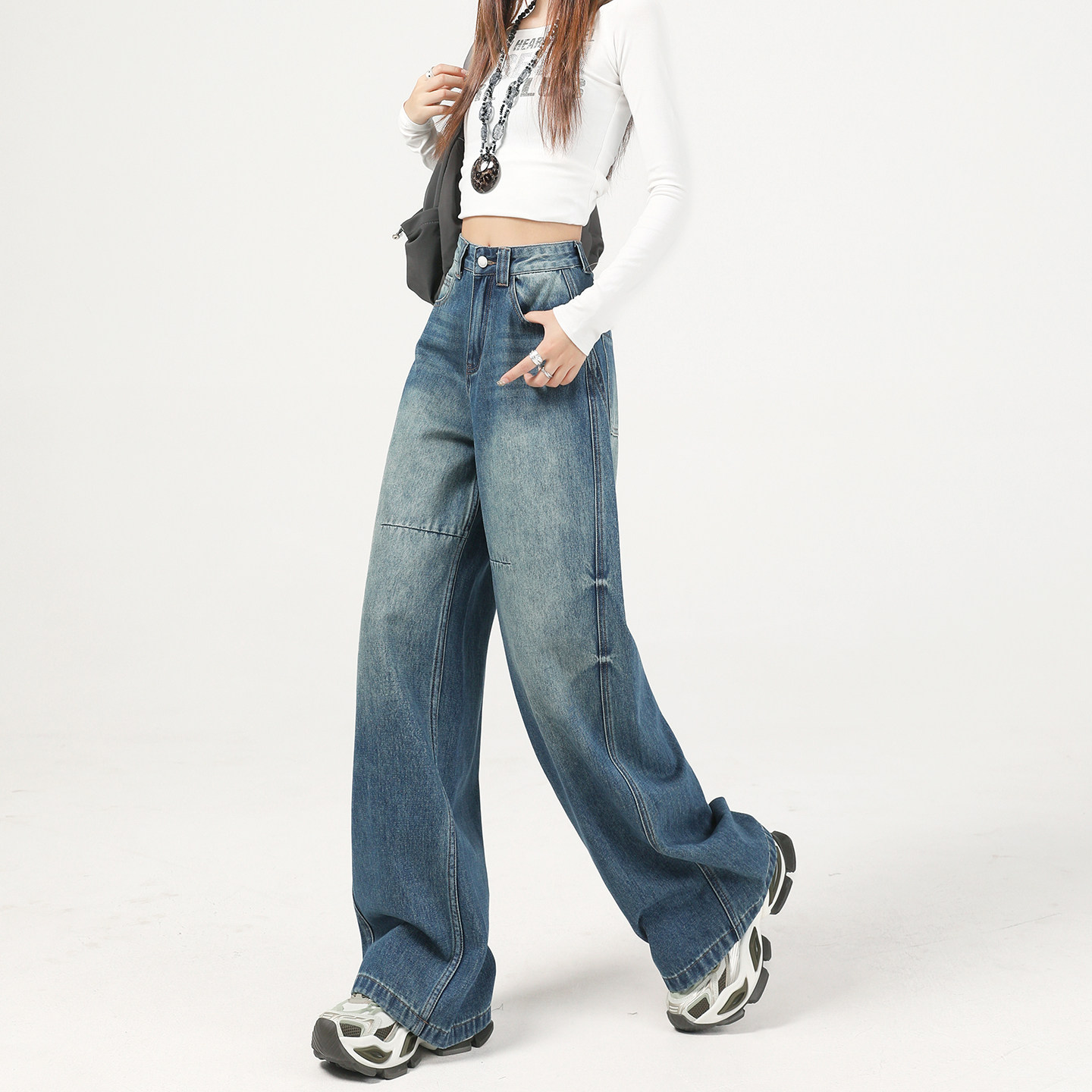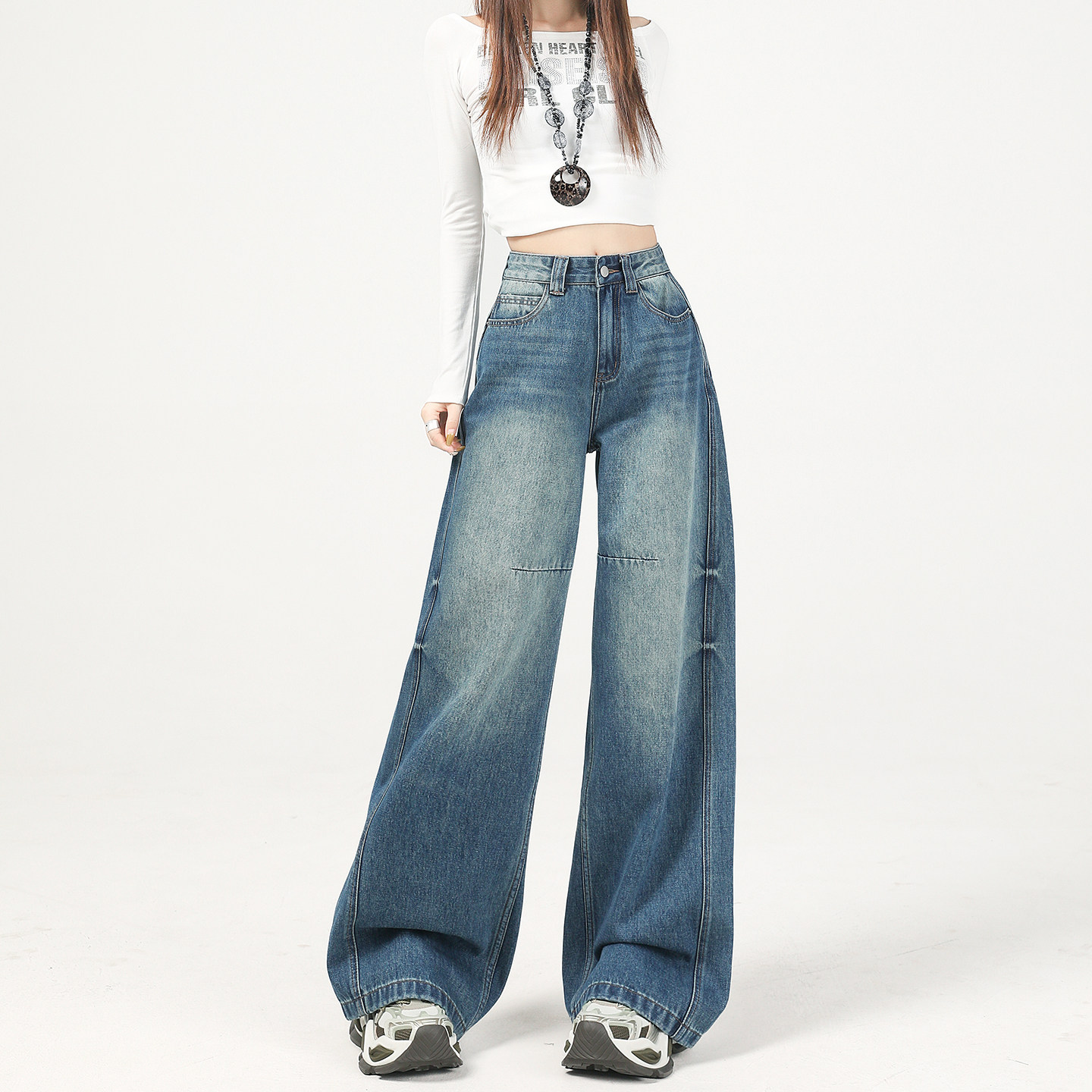 复古蓝直筒阔腿牛仔裤女2026春季新款高腰遮跨今年流行爆款拖地裤