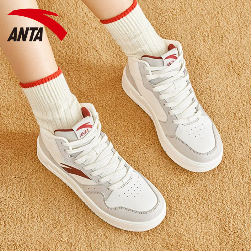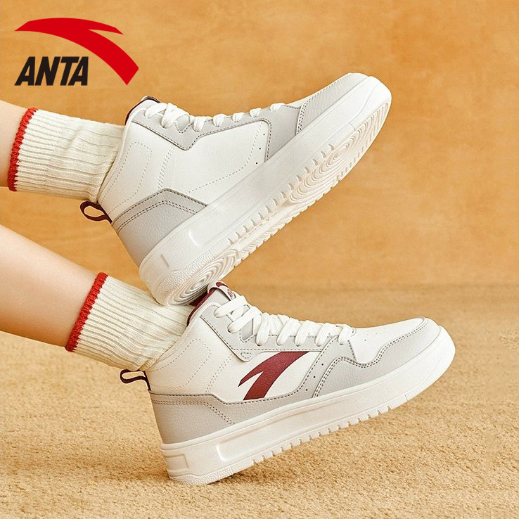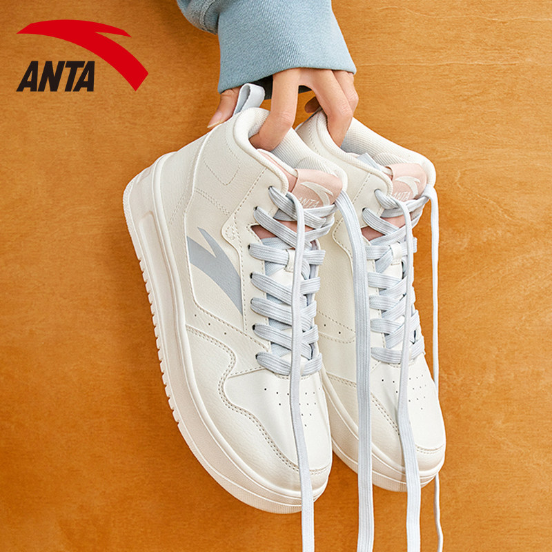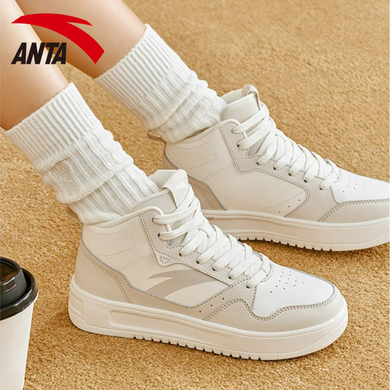 安踏高帮鞋子女板鞋女款2026新款春秋季皮面运动鞋潮鞋女生休闲鞋