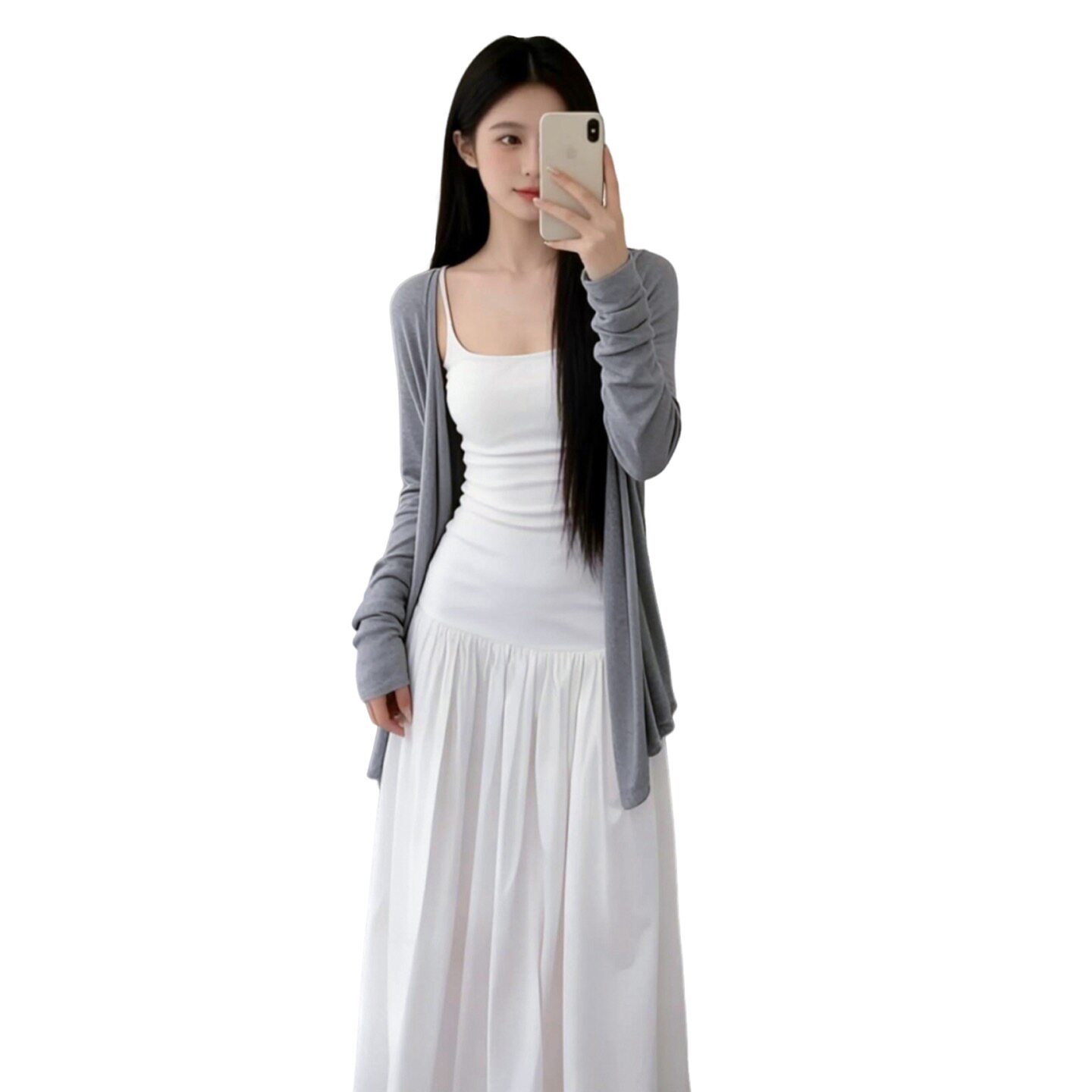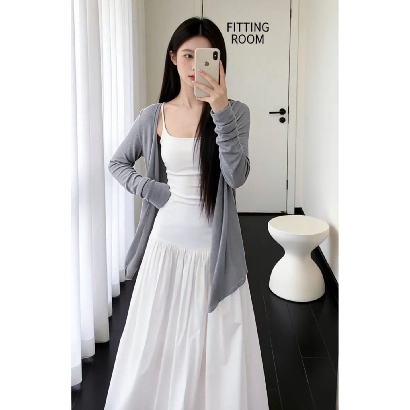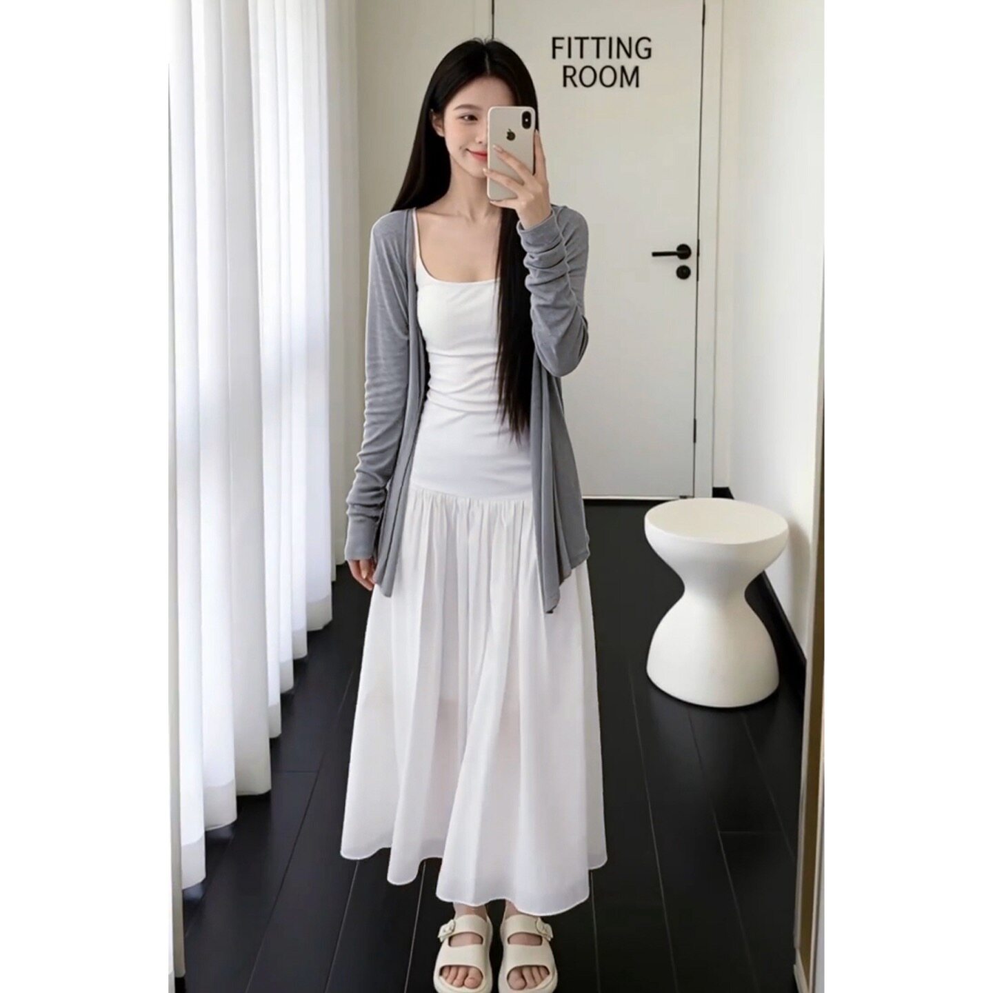 巨好看韩系穿搭一整套白色吊带连衣裙女2026新款春款气质套装长裙