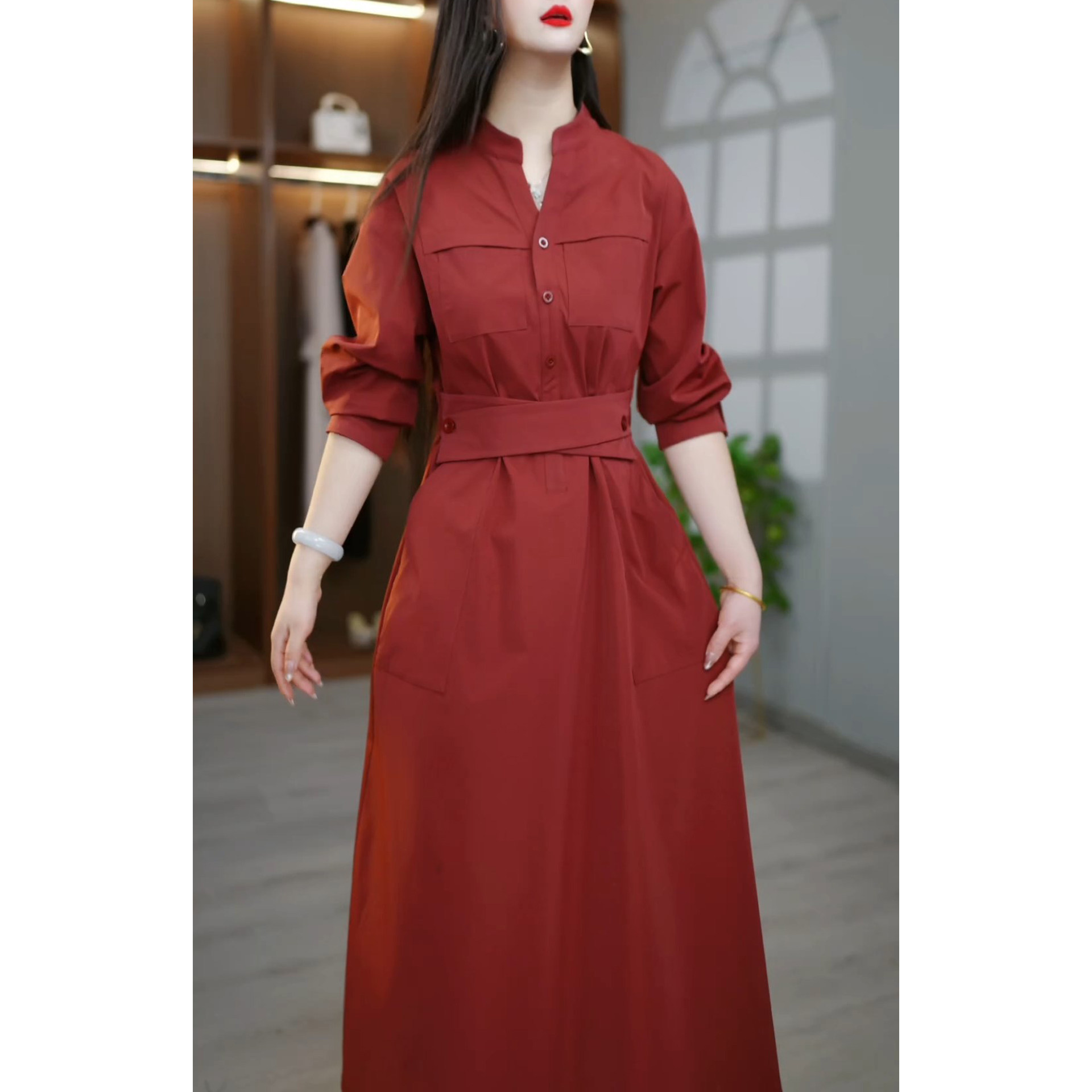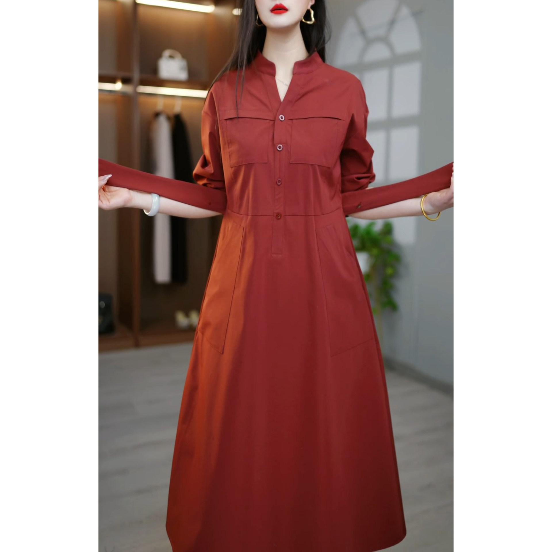 时尚百搭显瘦设计感连衣裙女2026春季新款大码气质中长款纯色裙子