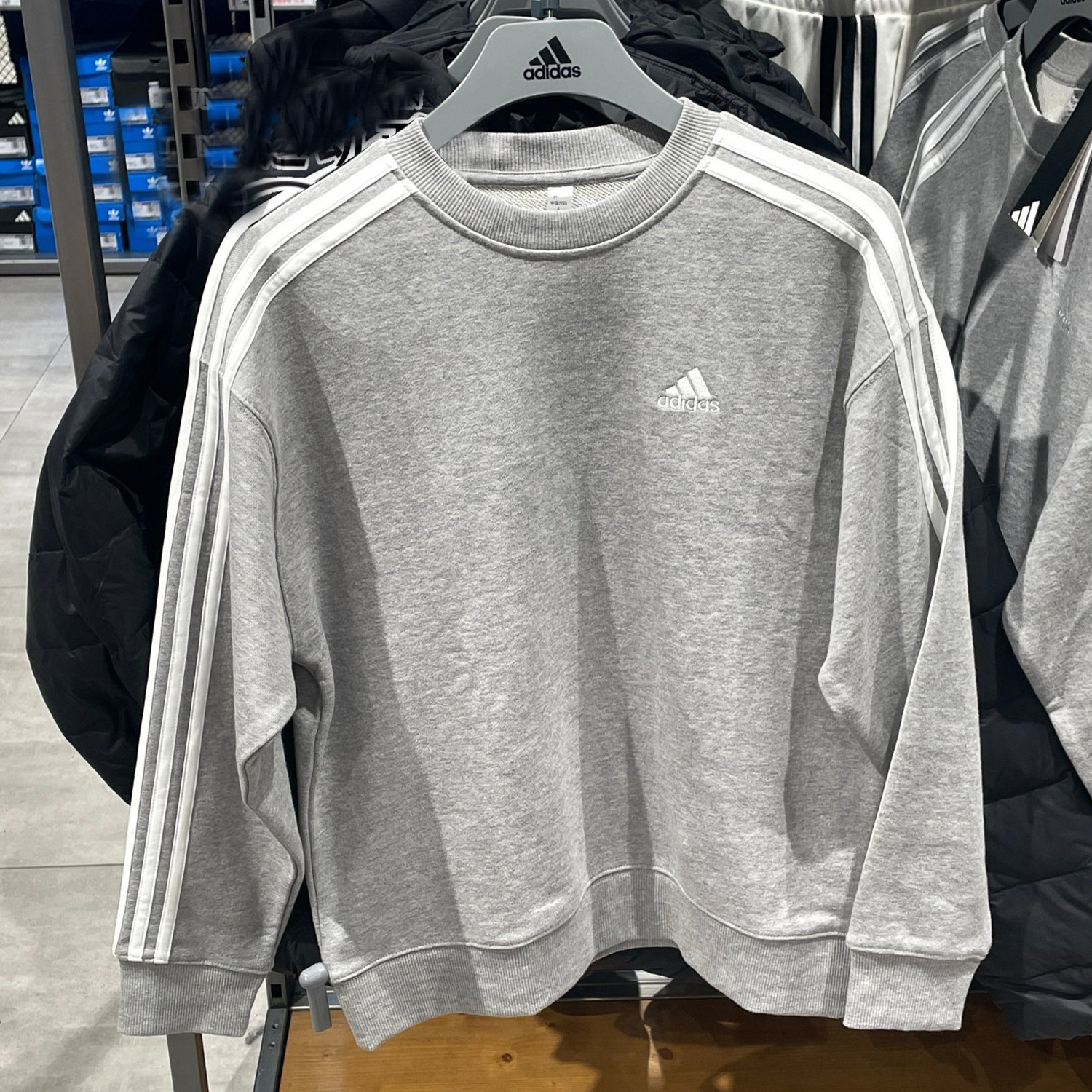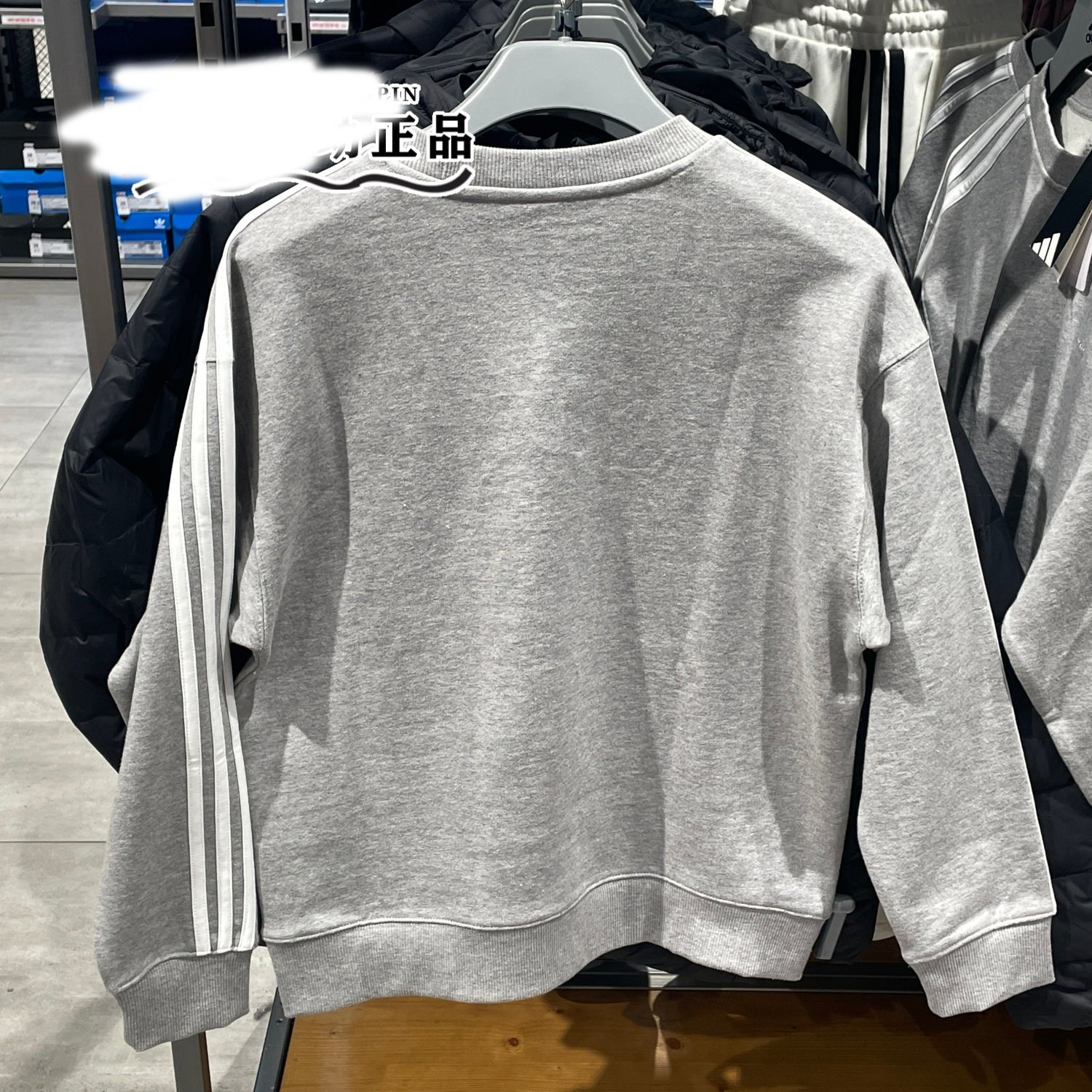 阿迪达斯灰色卫衣男春季新款圆领复古美式上衣宽松圆领大码运动服