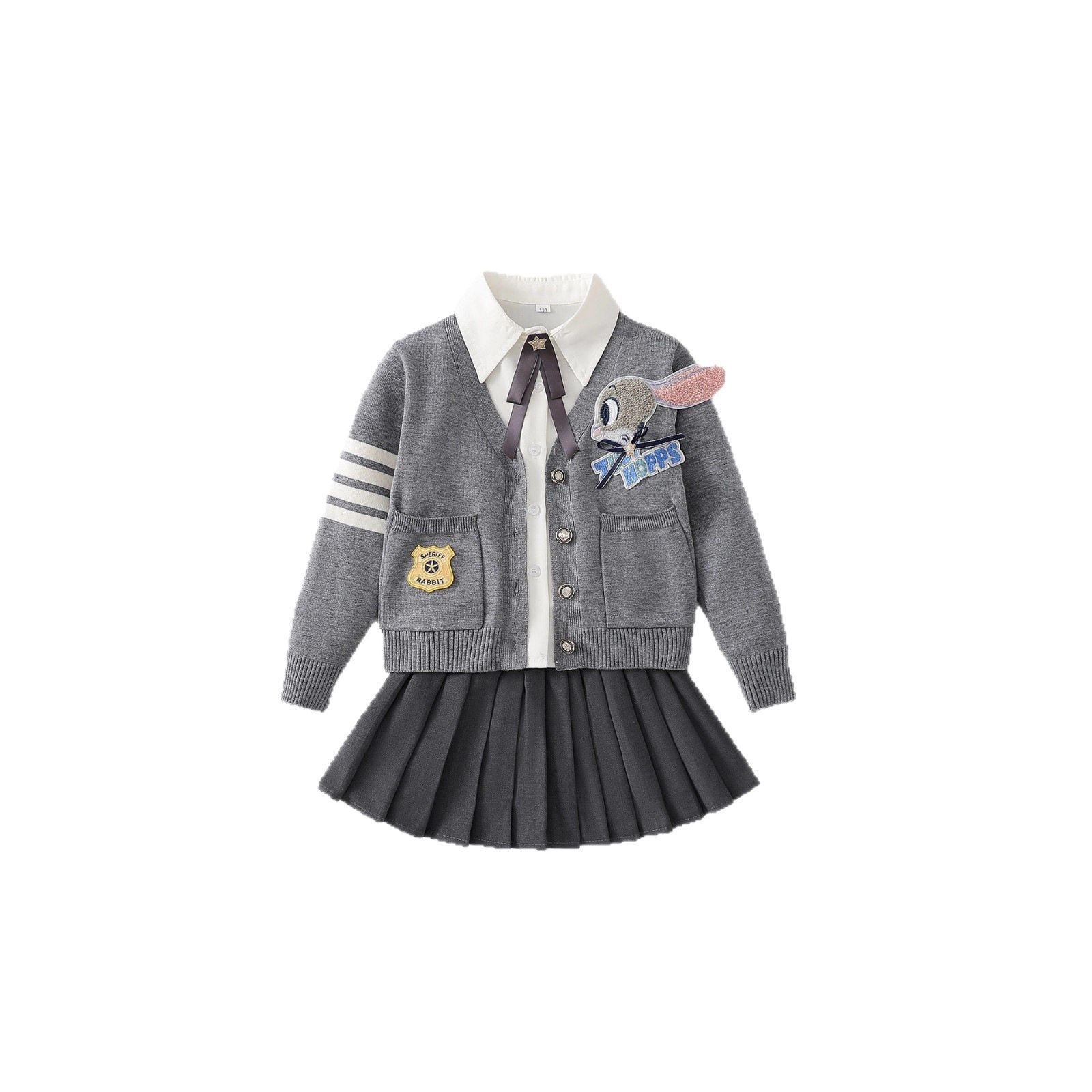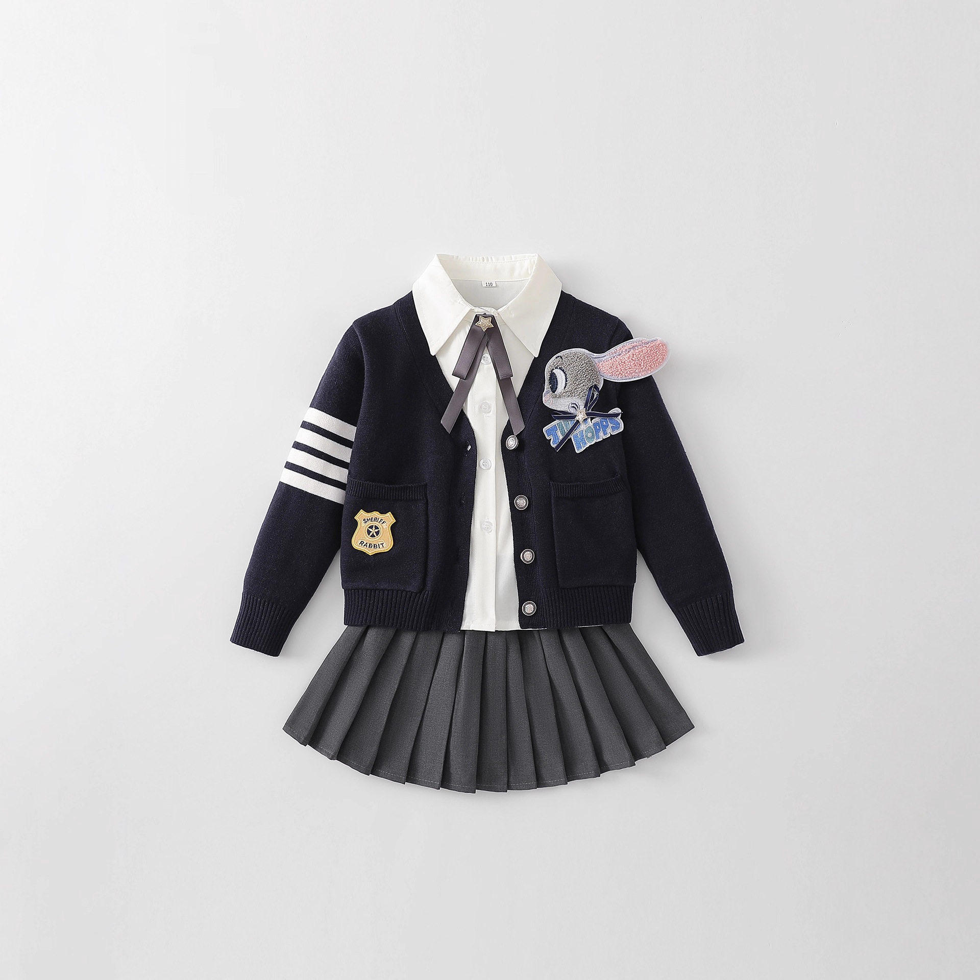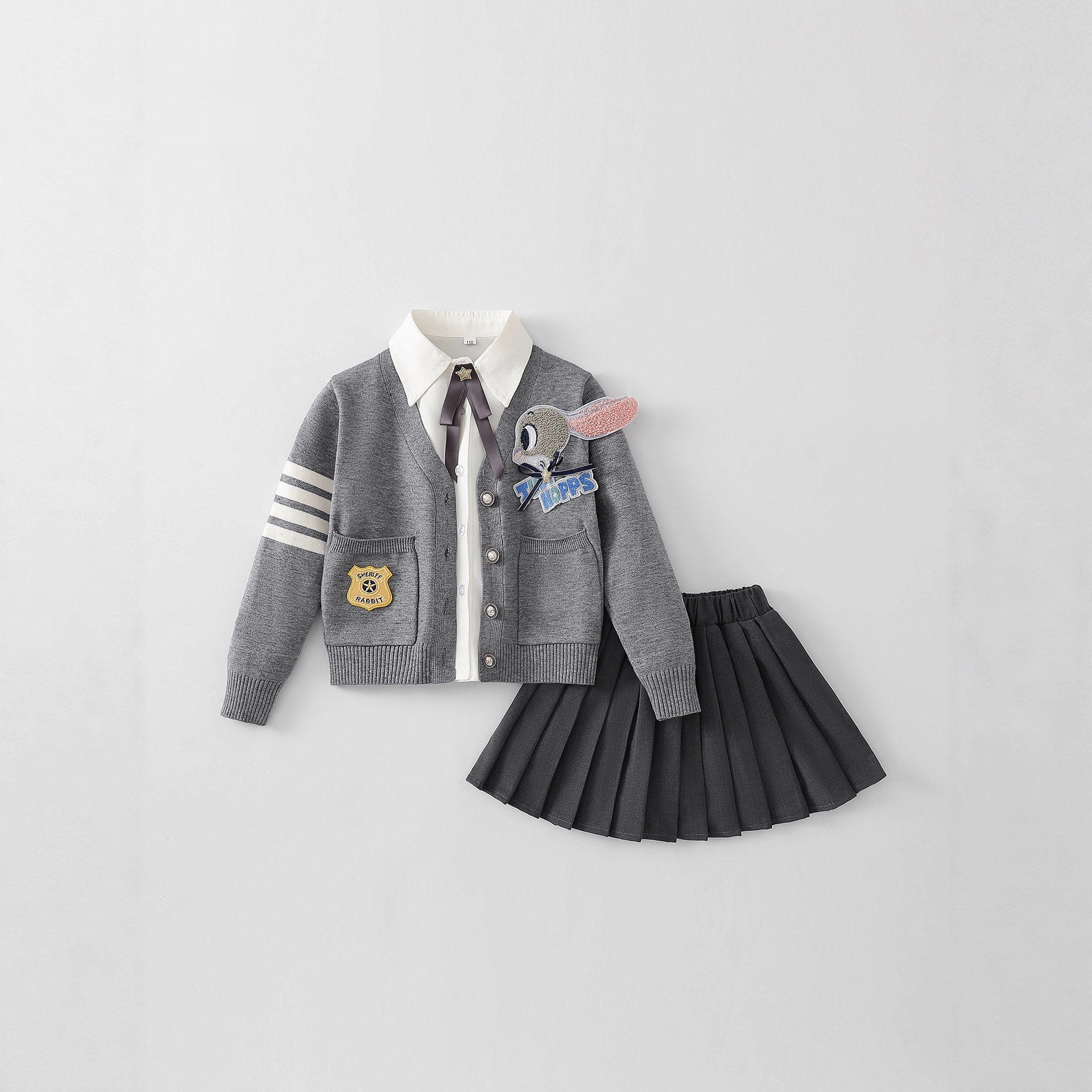 动物城儿童衣服女童秋冬朱迪兔子警官cos服毛衣三件套jk裙子套装