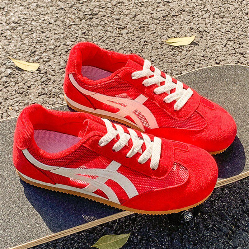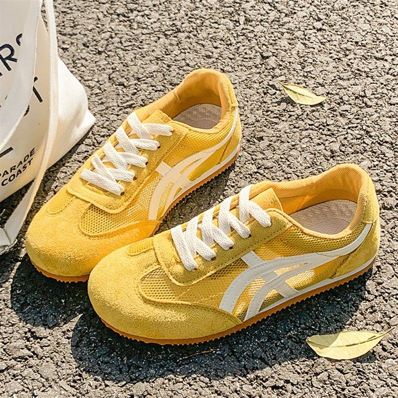2025年超火的德训鞋运动鞋女夏薄款网面透气红色跑步鞋黄色阿甘鞋