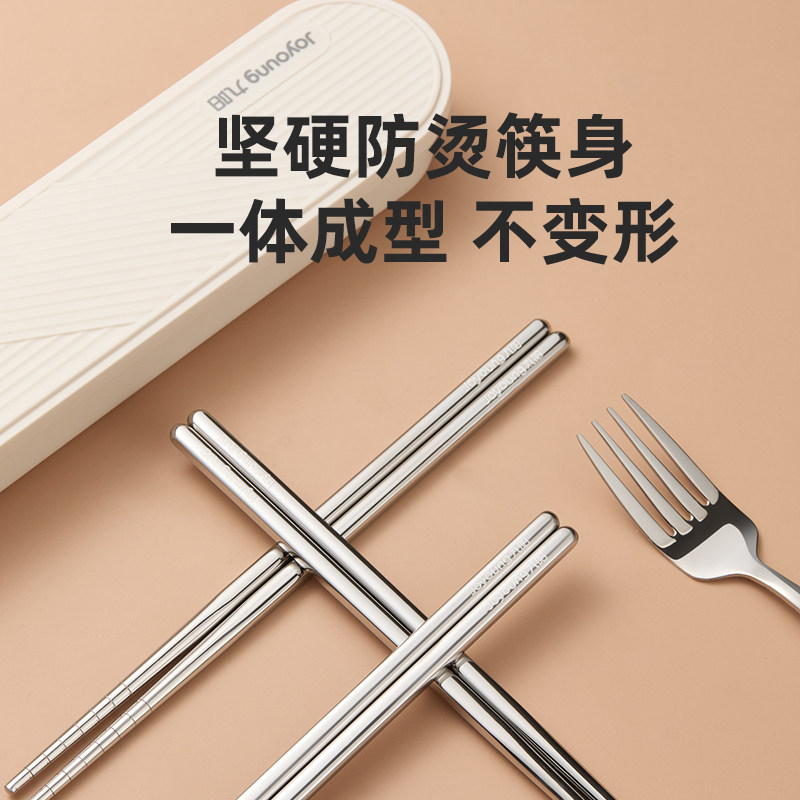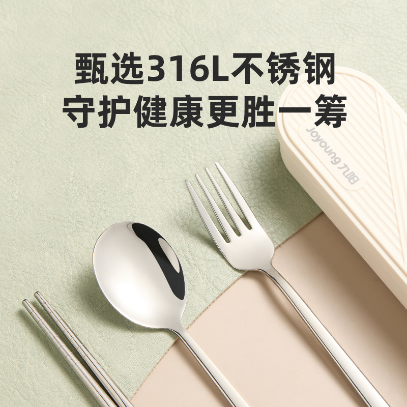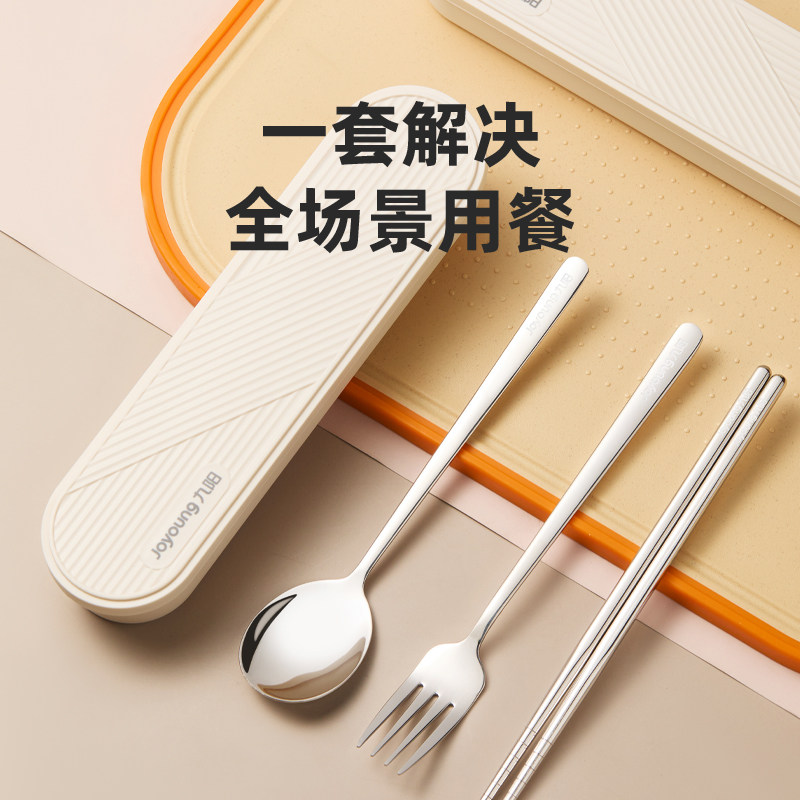 九阳不锈钢筷子勺子套装便携式餐具三件套上班一人专用学生收纳盒