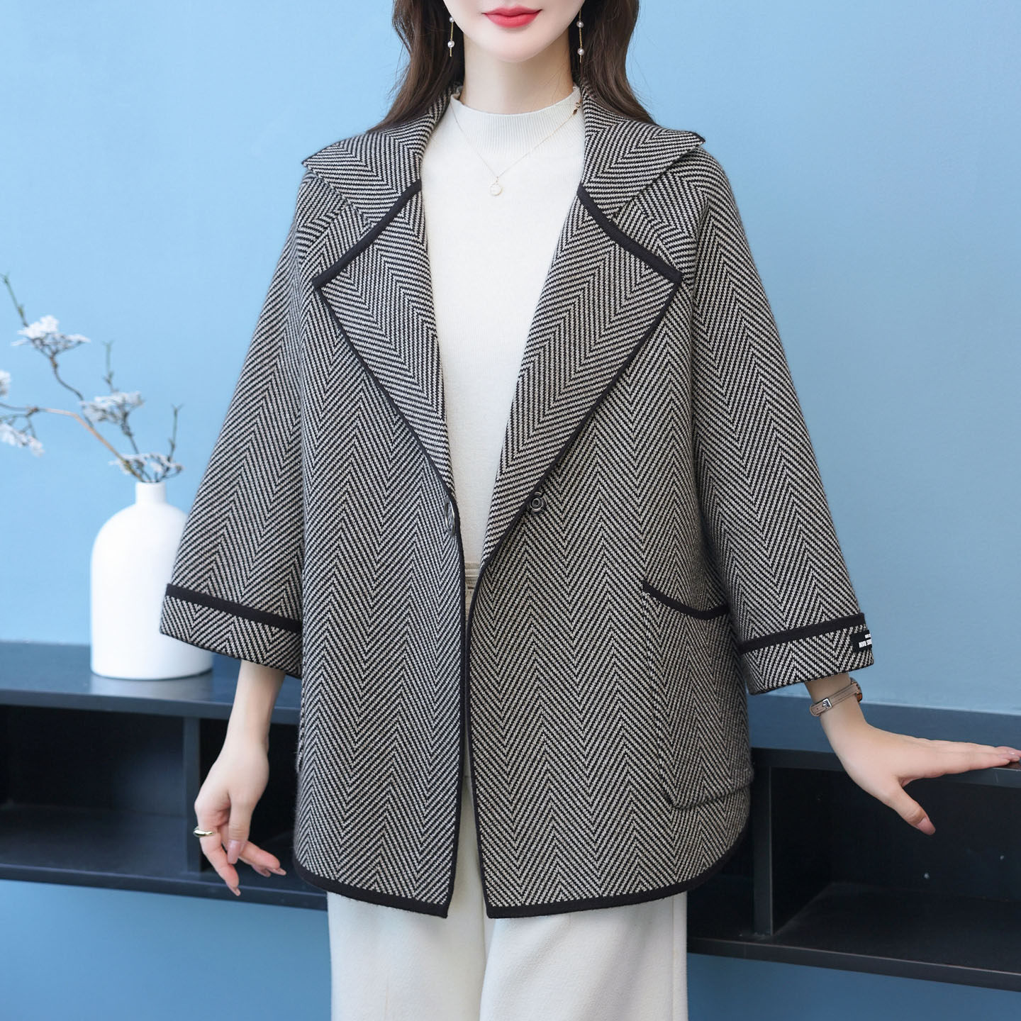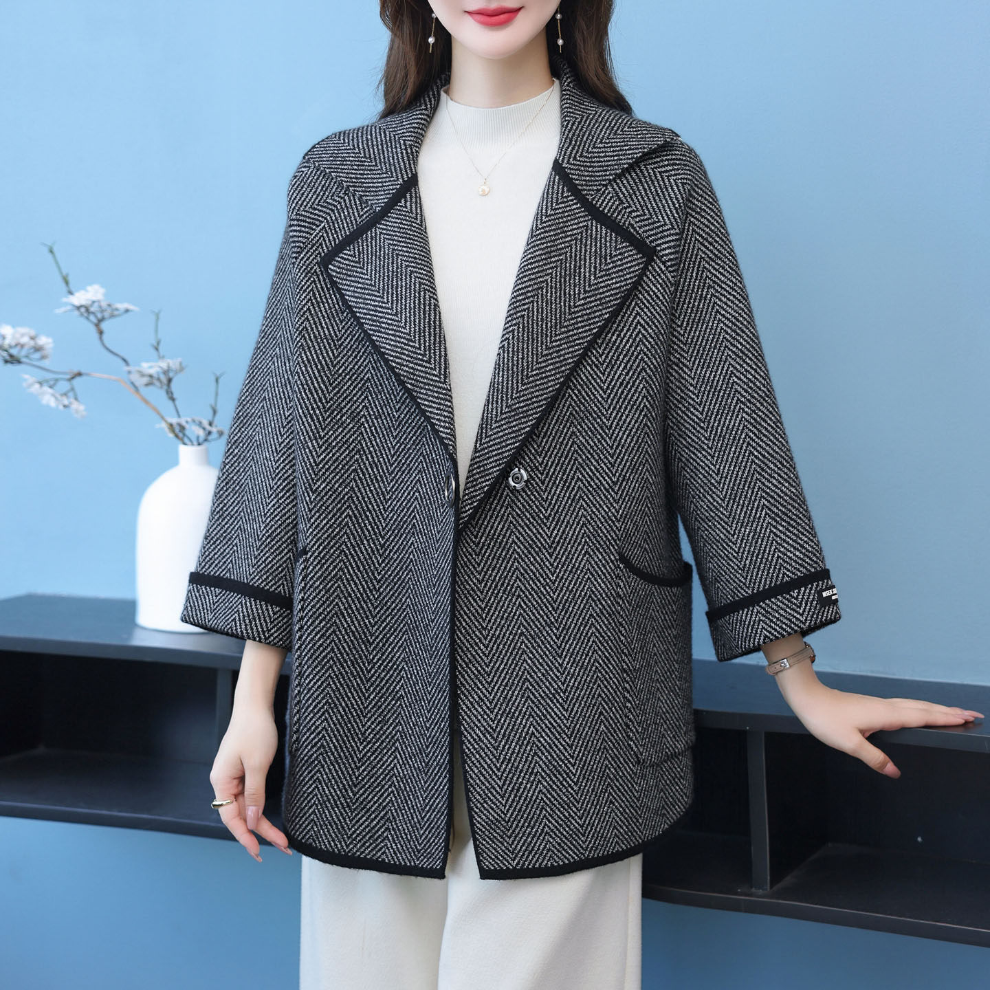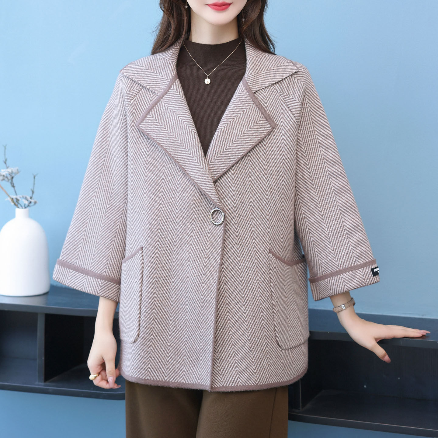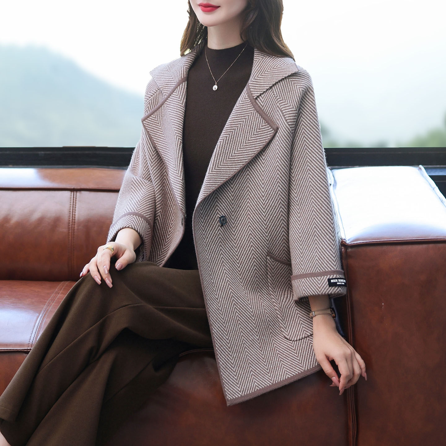 妈妈秋装洋气呢子外套中年女士风衣高贵中老年秋冬针织双面呢大衣