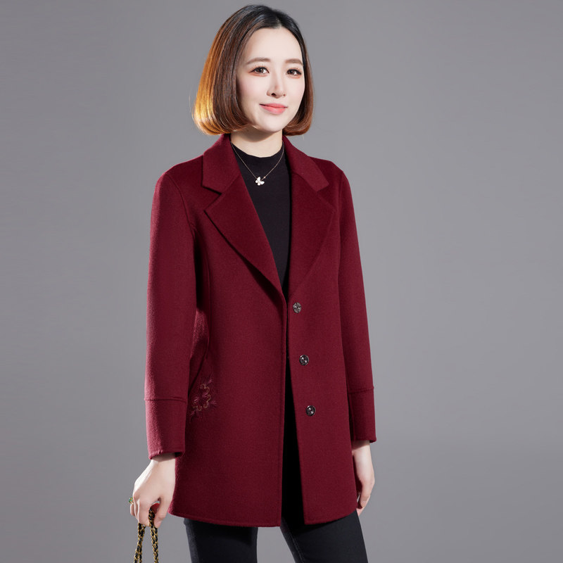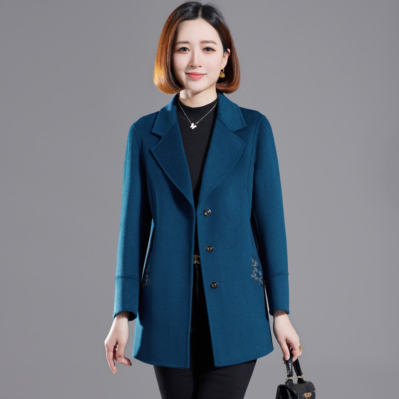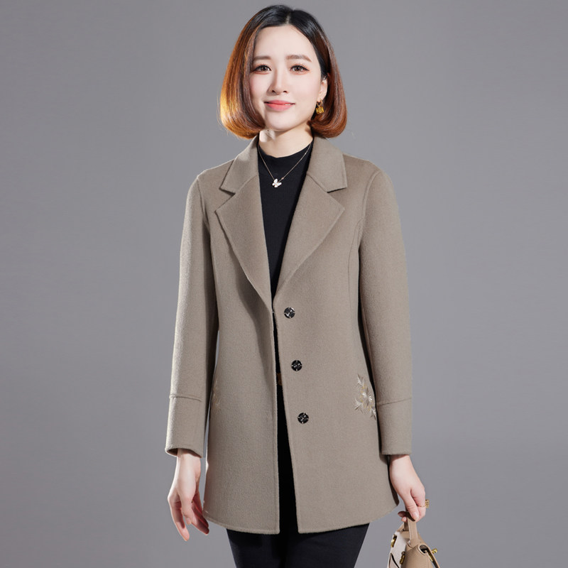气质中年妈妈双面羊绒大衣女中款高贵洋气秋冬新款西装羊毛呢外套