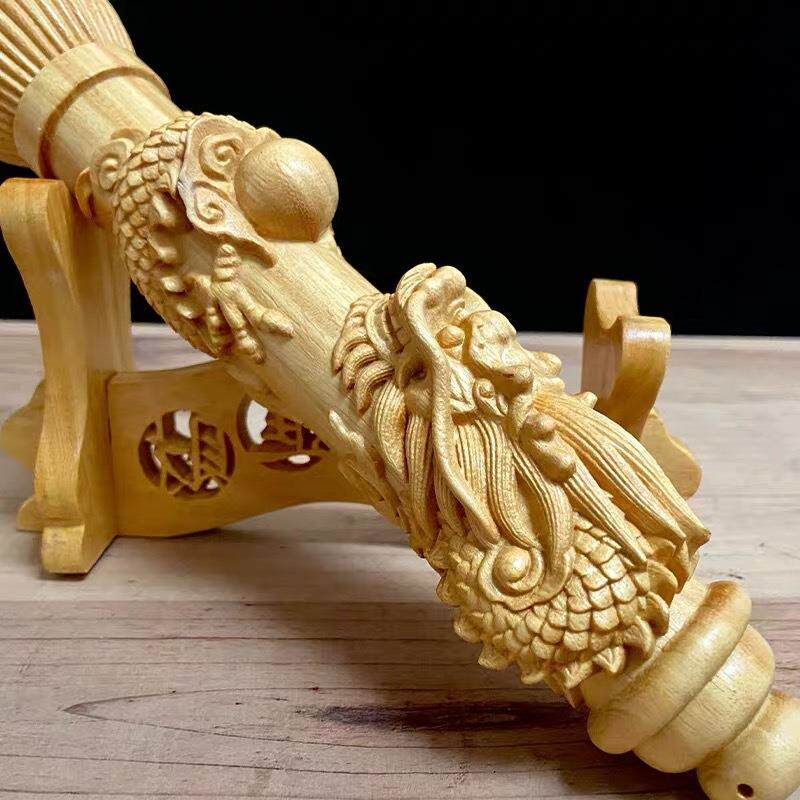黄金檀木大笔进财文昌盘龙笔摆件 金榜题名毛笔文玩手把玩件考生
