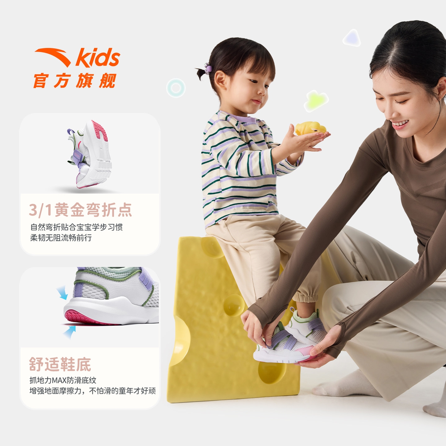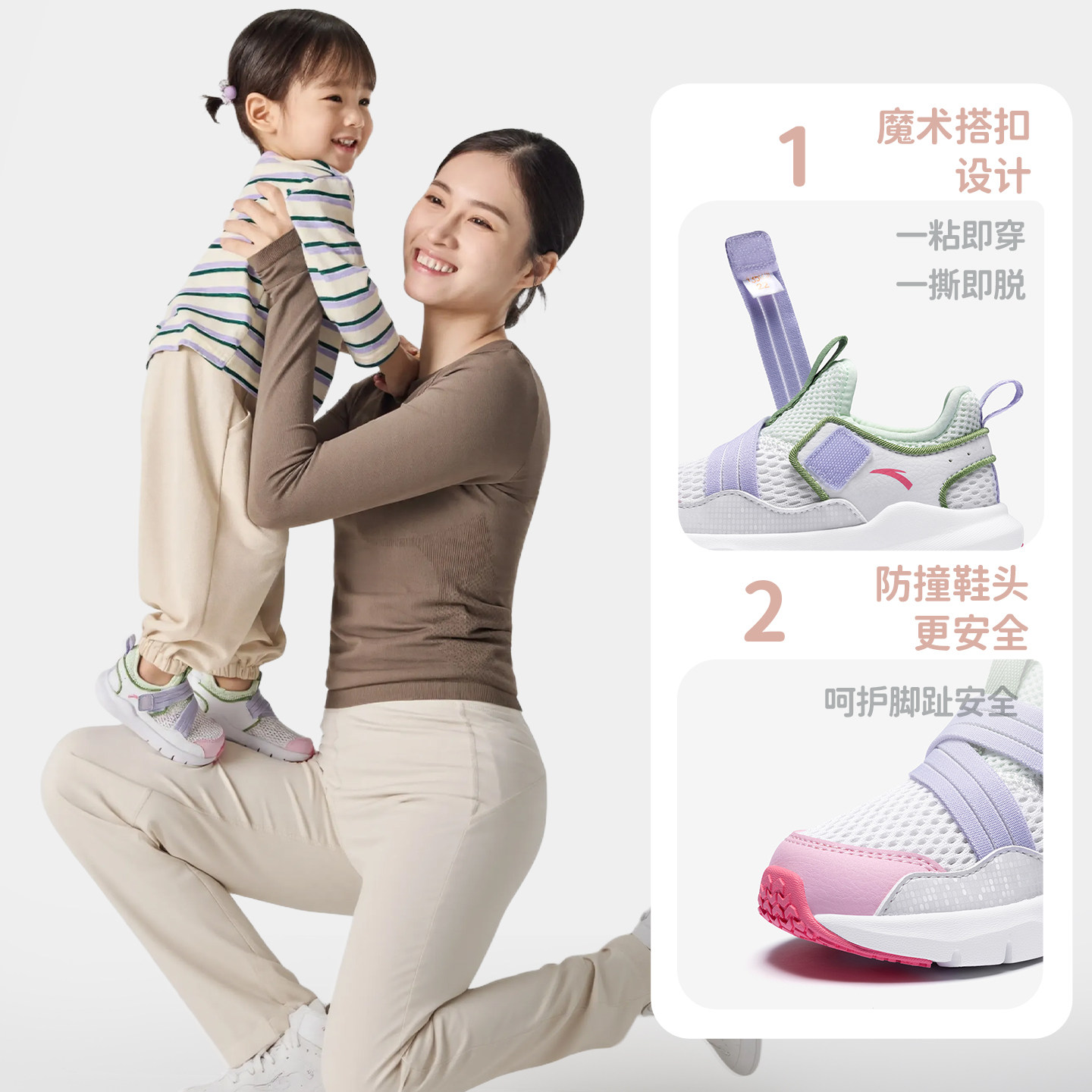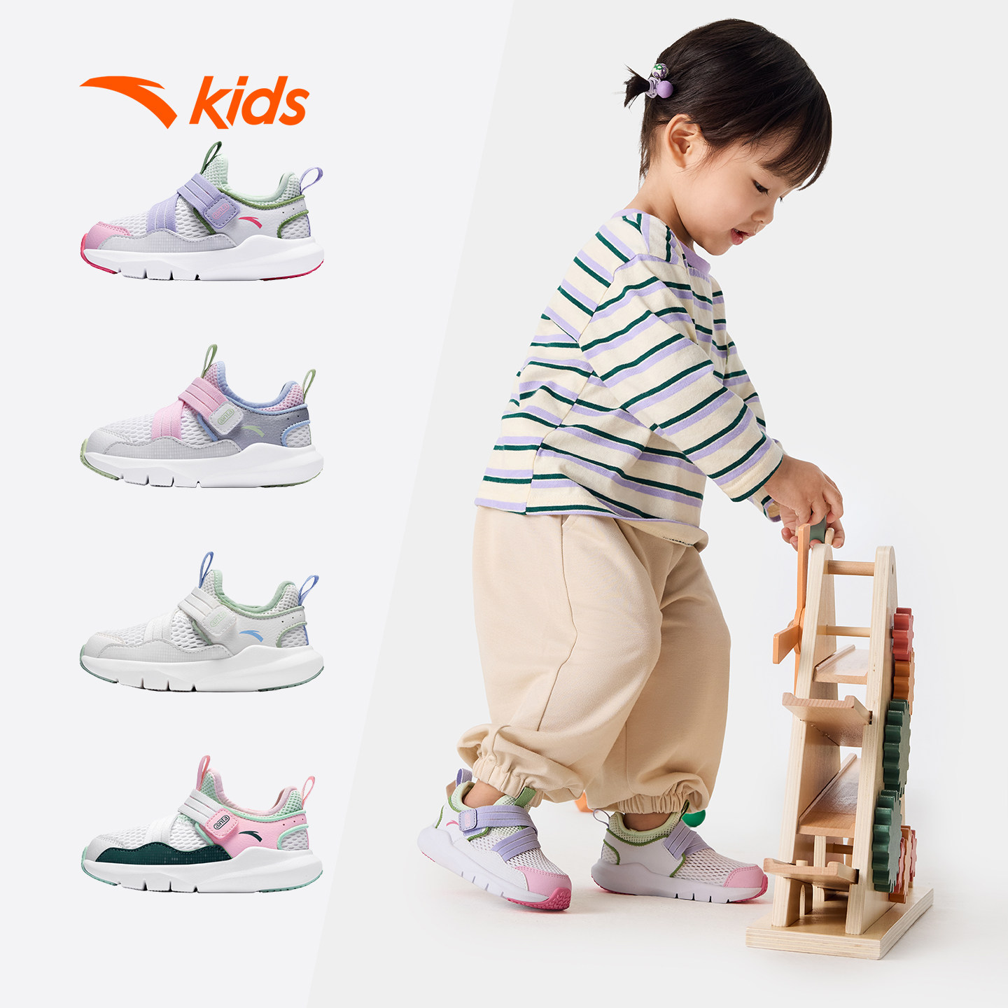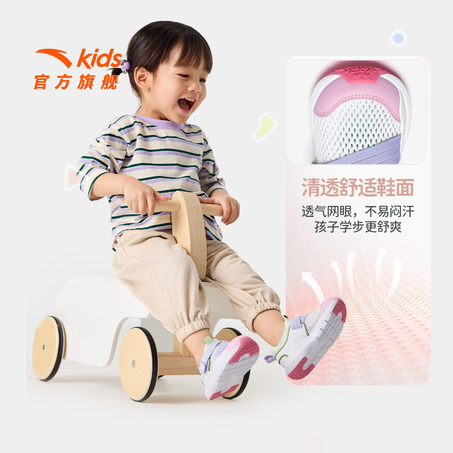 安踏学步鞋夏季新款一脚蹬网眼运动鞋男女宝宝婴幼儿鞋子多巴胺风