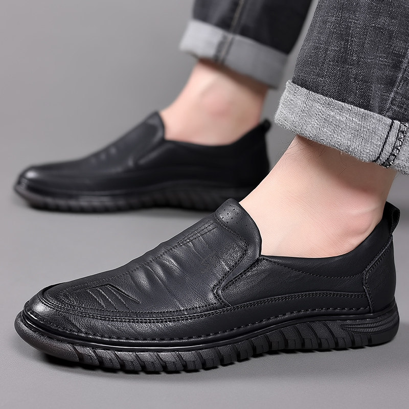男鞋秋冬季加绒男士休闲鞋一脚蹬皮鞋男款软底软面中年父亲爸爸鞋