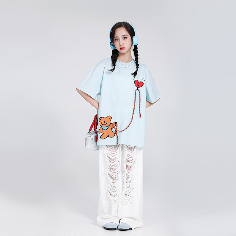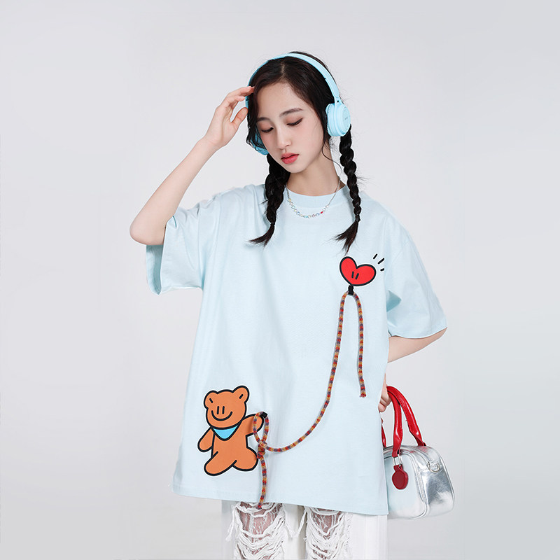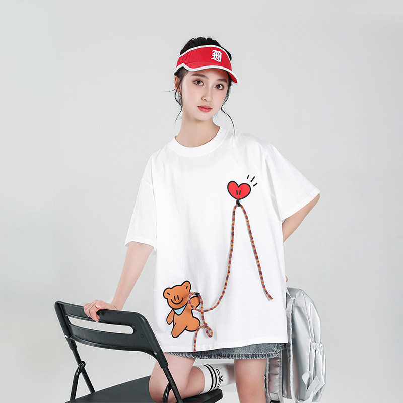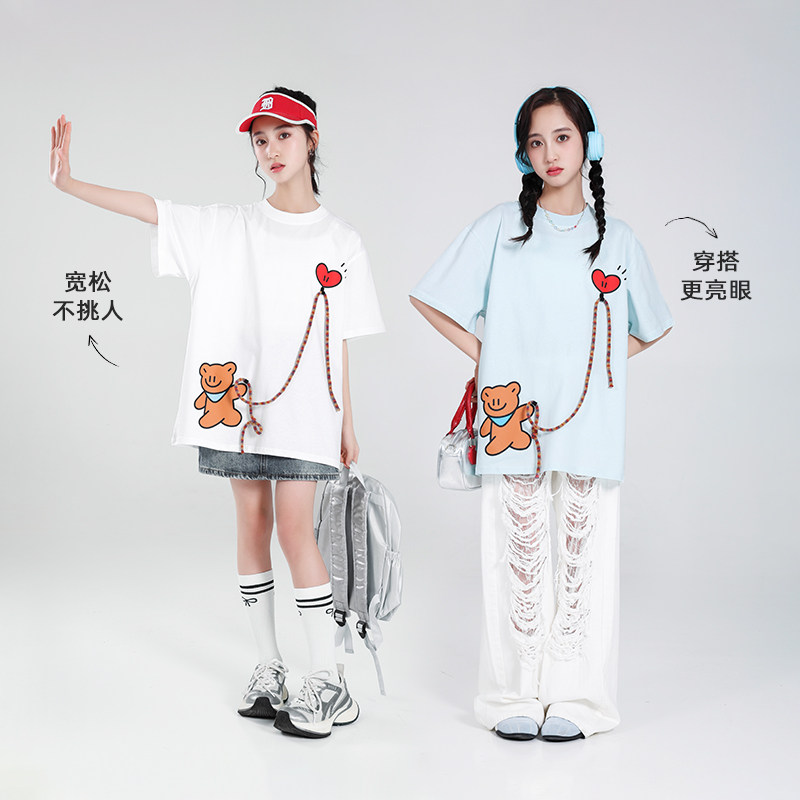 女大童短袖T恤2026新款纯棉上衣初中生潮牌宽松夏装青少年女孩衫