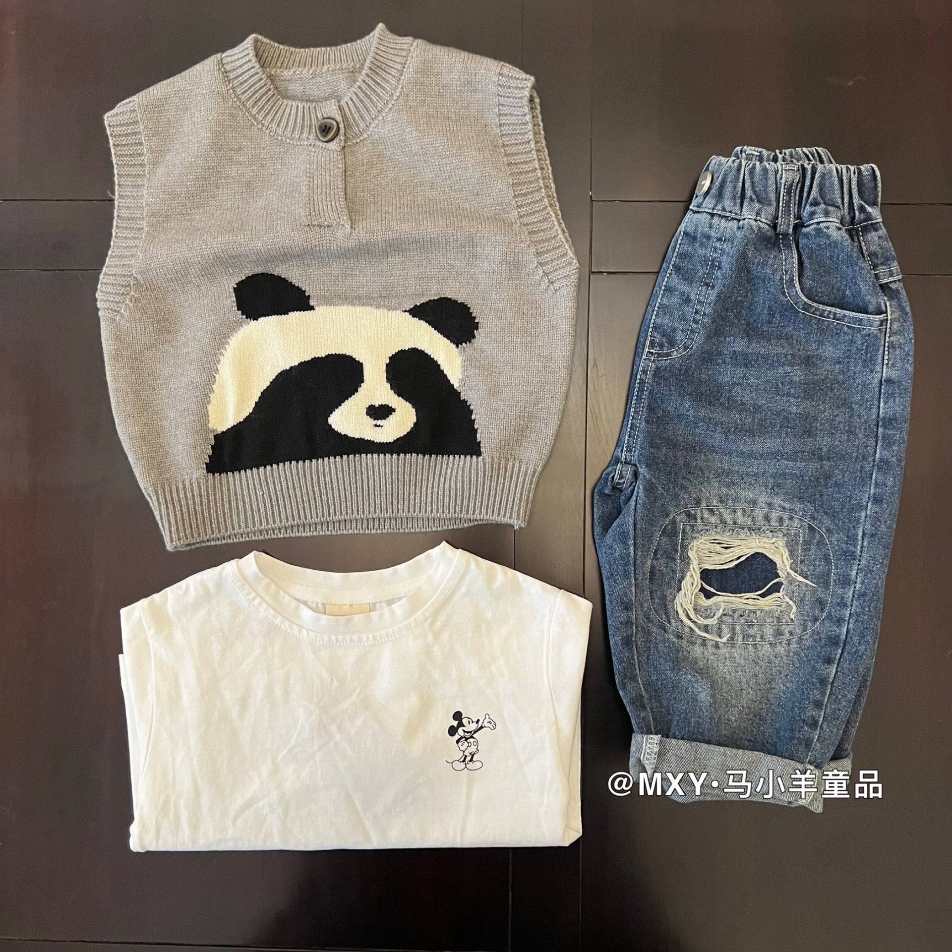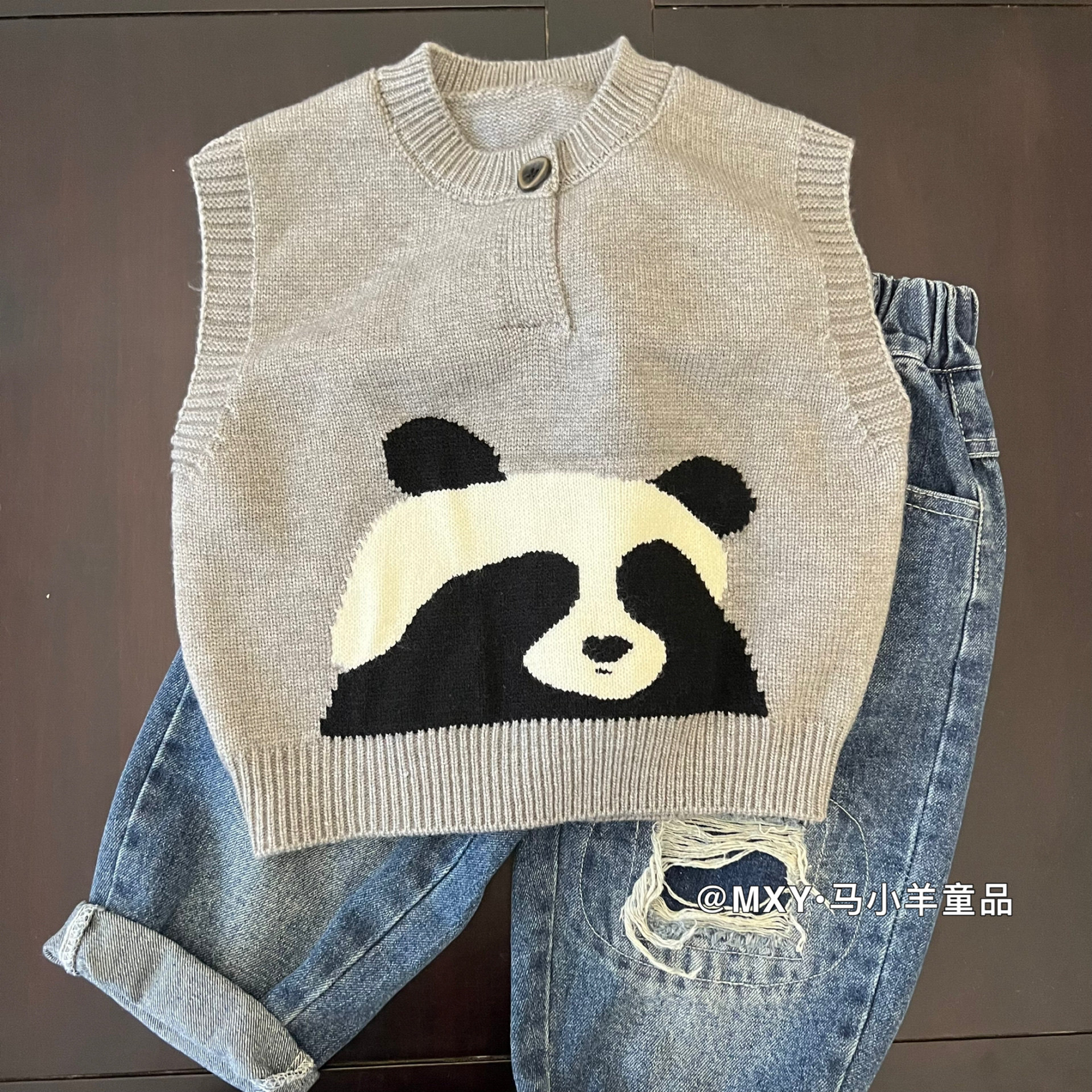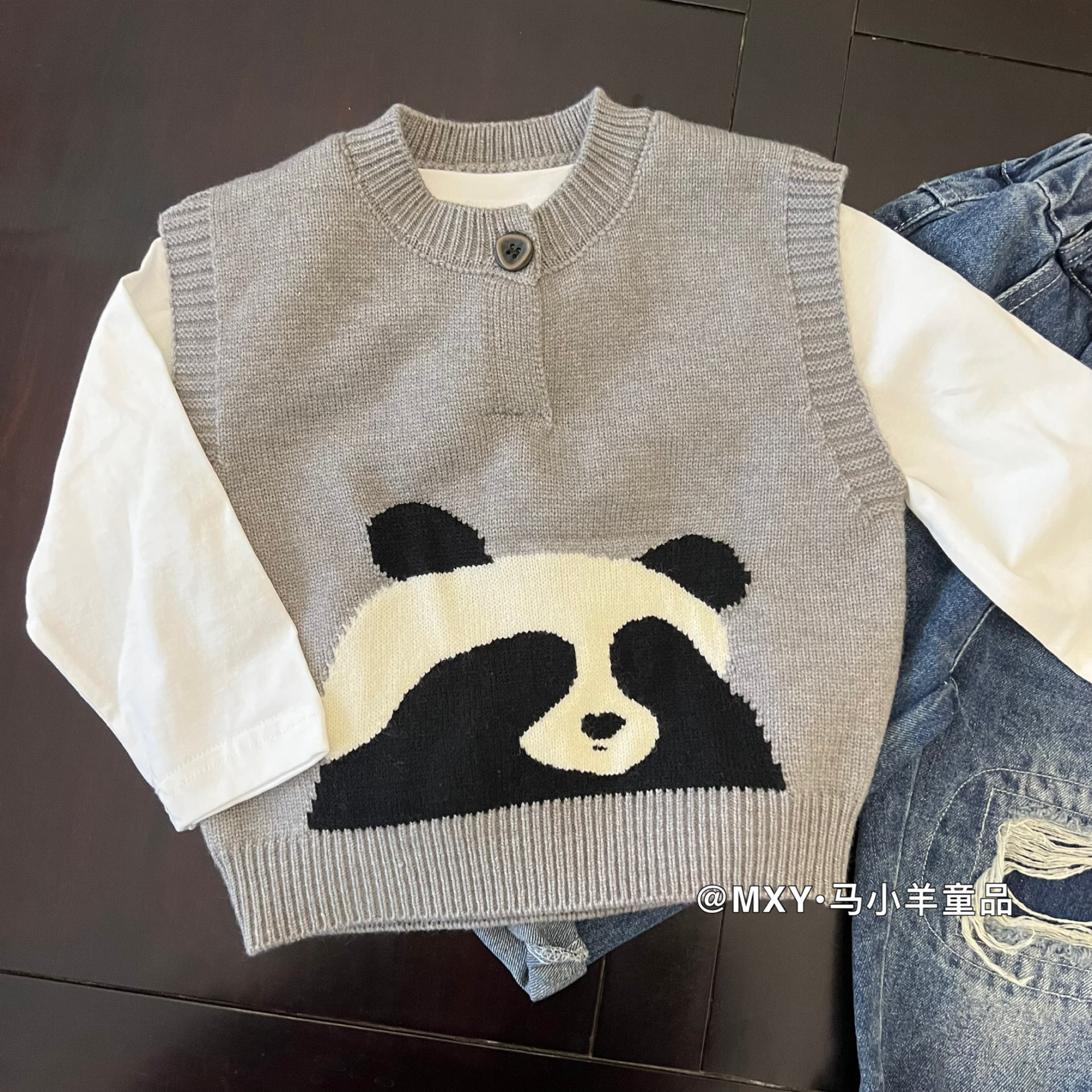 软绵绵~儿童针织毛衣春款男女童卡通熊猫马甲宝宝洋气套头背心潮