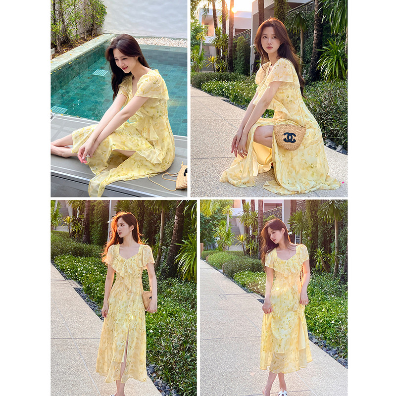 311线报网描述:宫廷领修身版型,大身不规则荷叶边,侧开叉