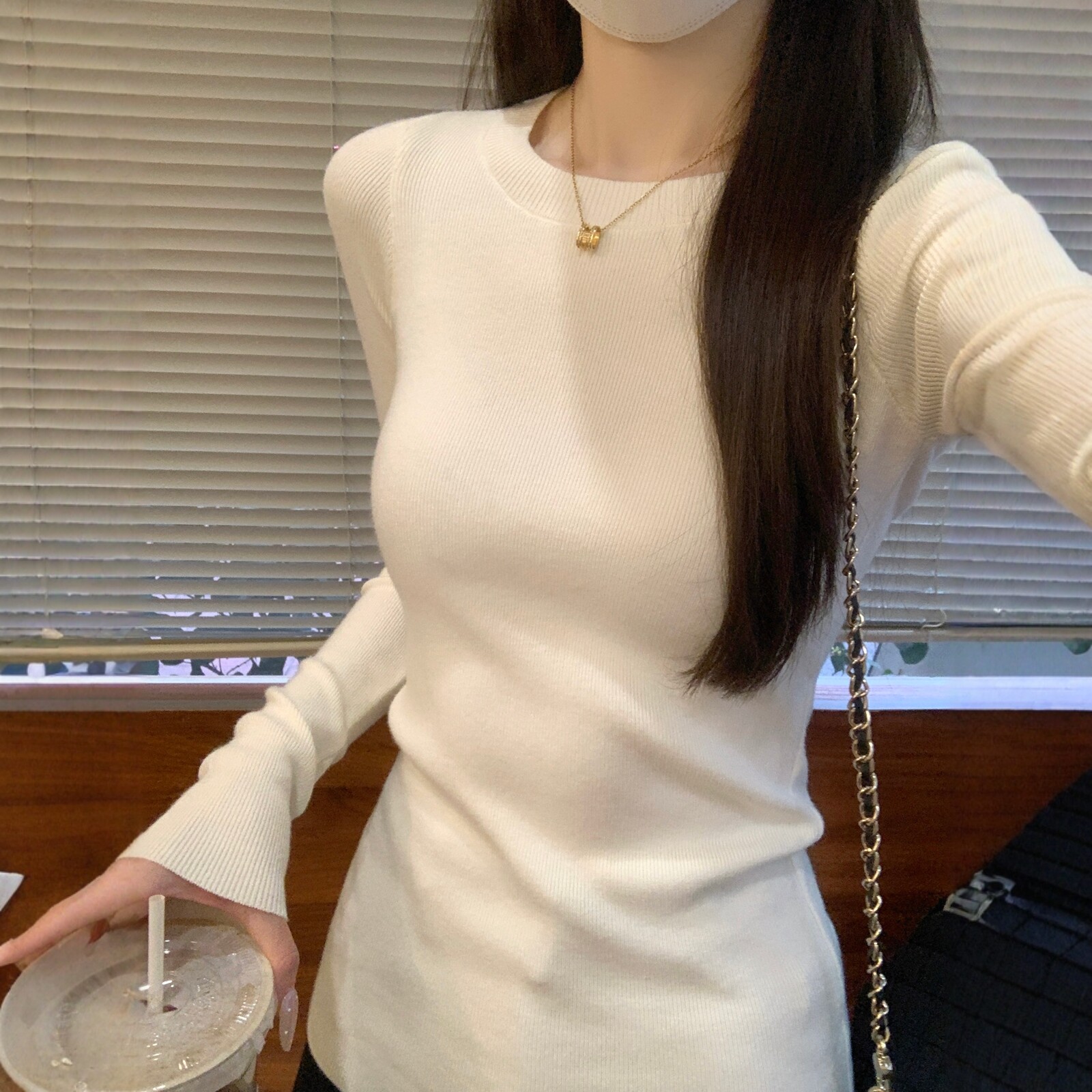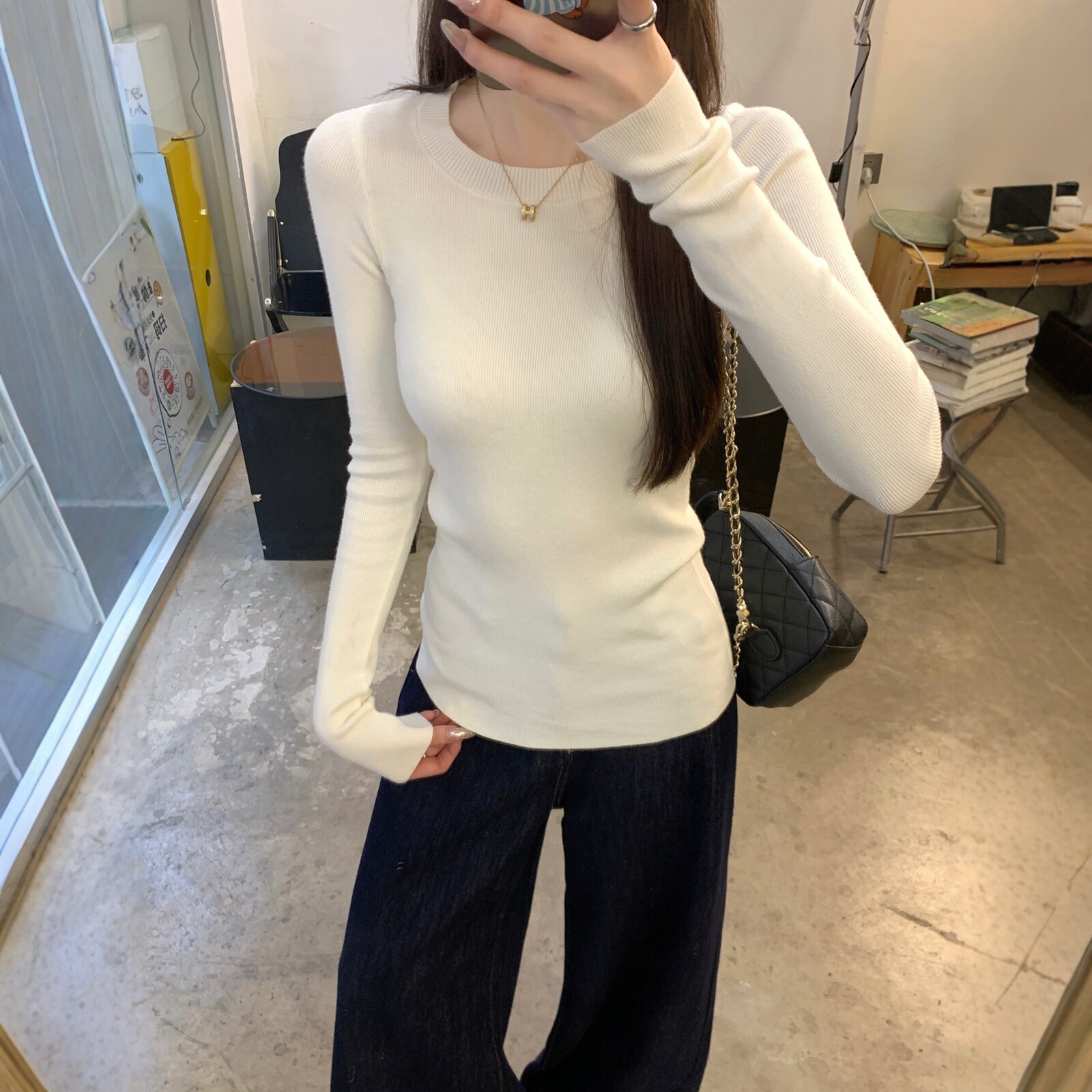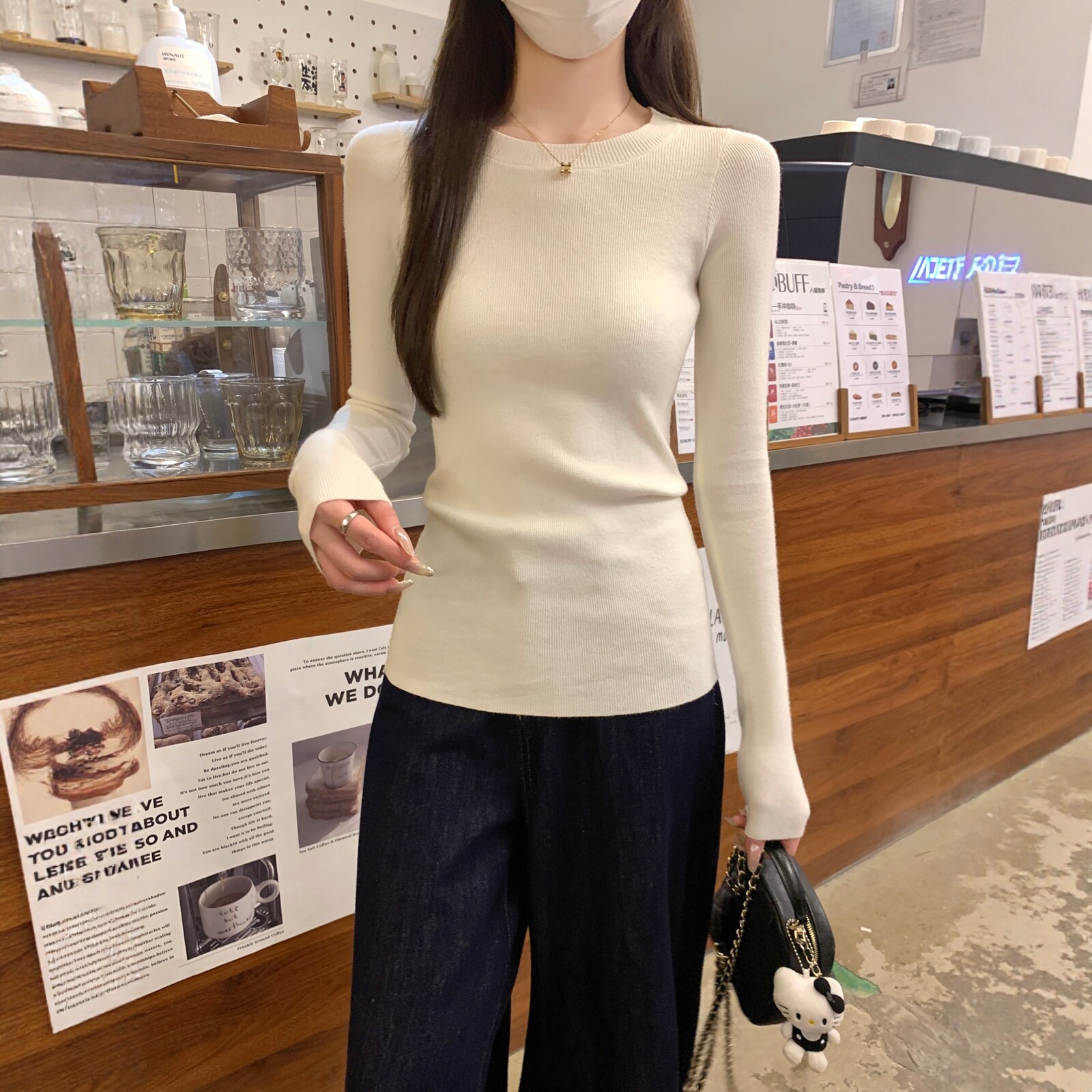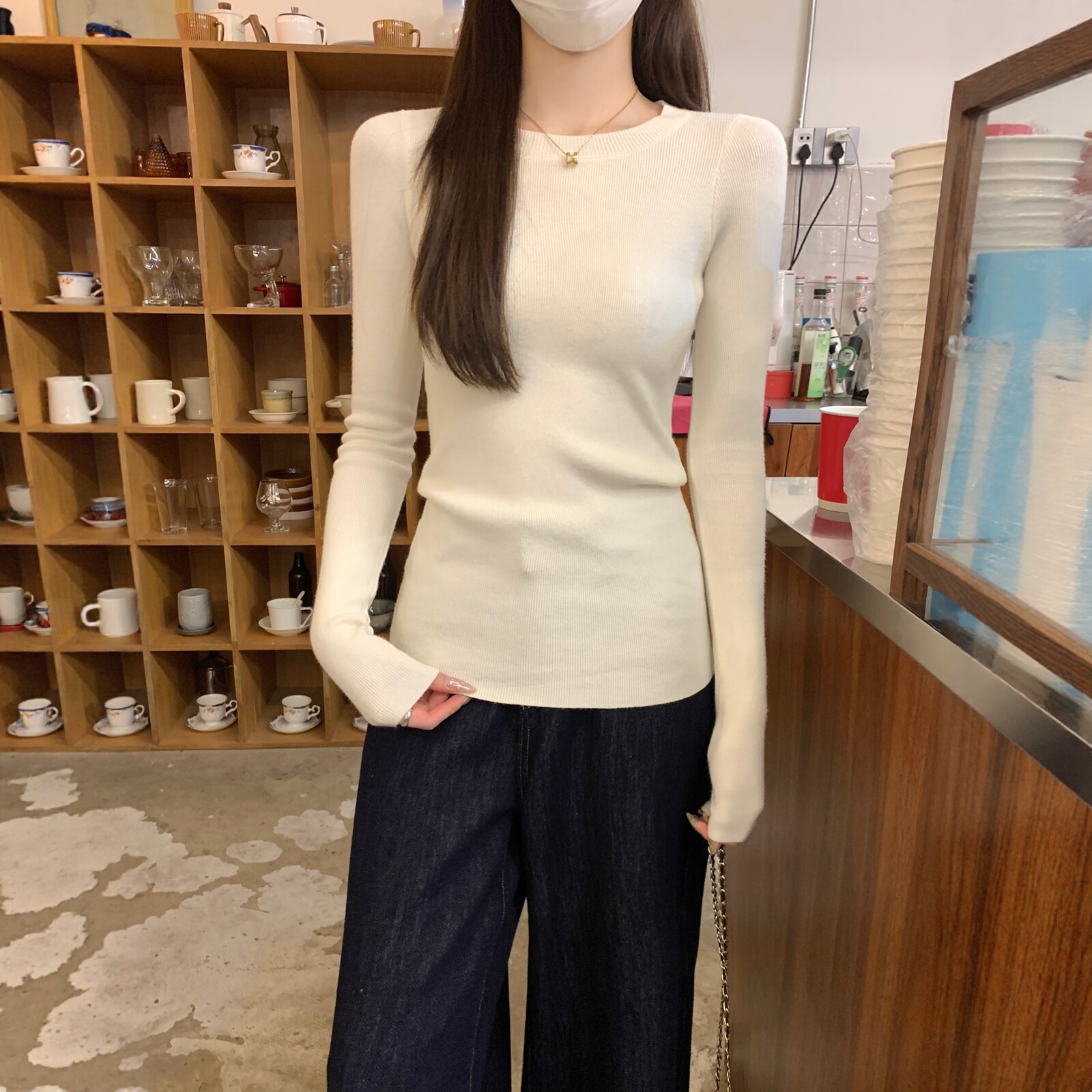 春装女款2026年新款淡人高知穿搭针织衫女正肩修身打底衫内搭上衣