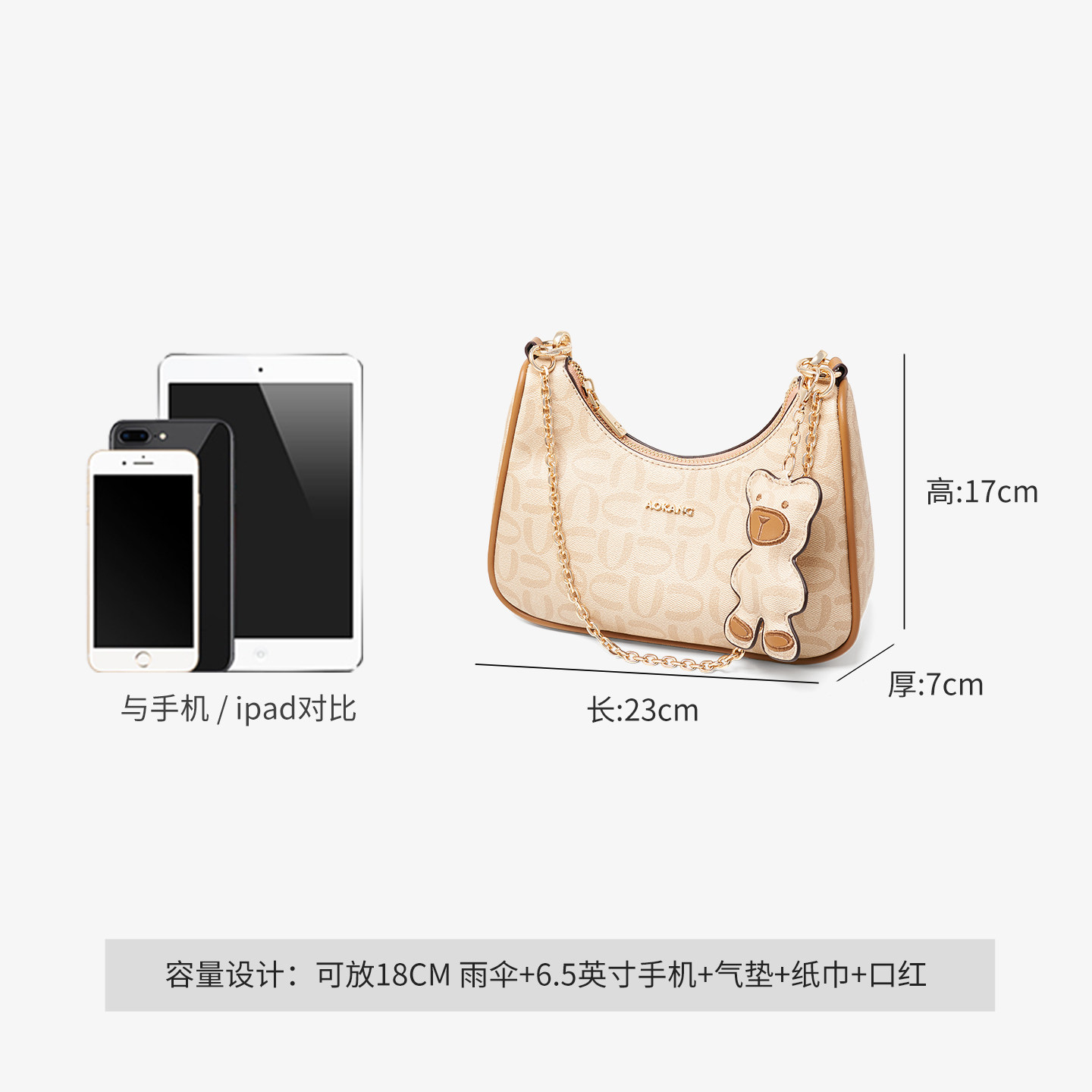 311线报网描述:双肩带设计 可爱小熊挂饰 舒适PVC面料