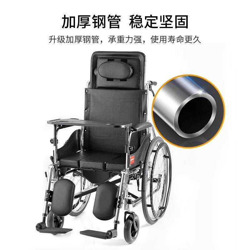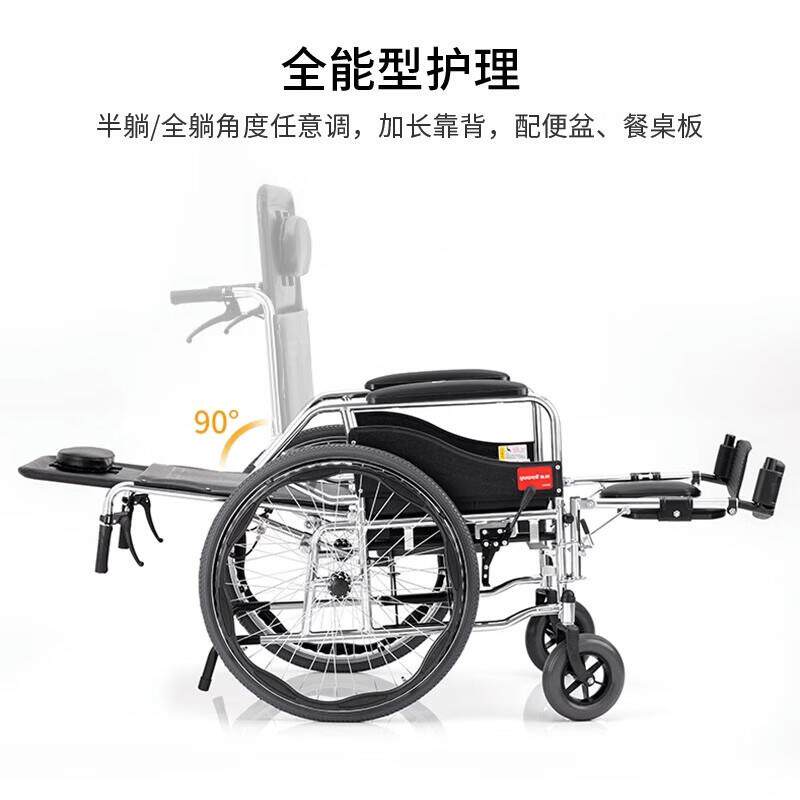 便携可折叠轮椅老人外出轻便可全躺护理轮椅车带便盆多功能轮椅