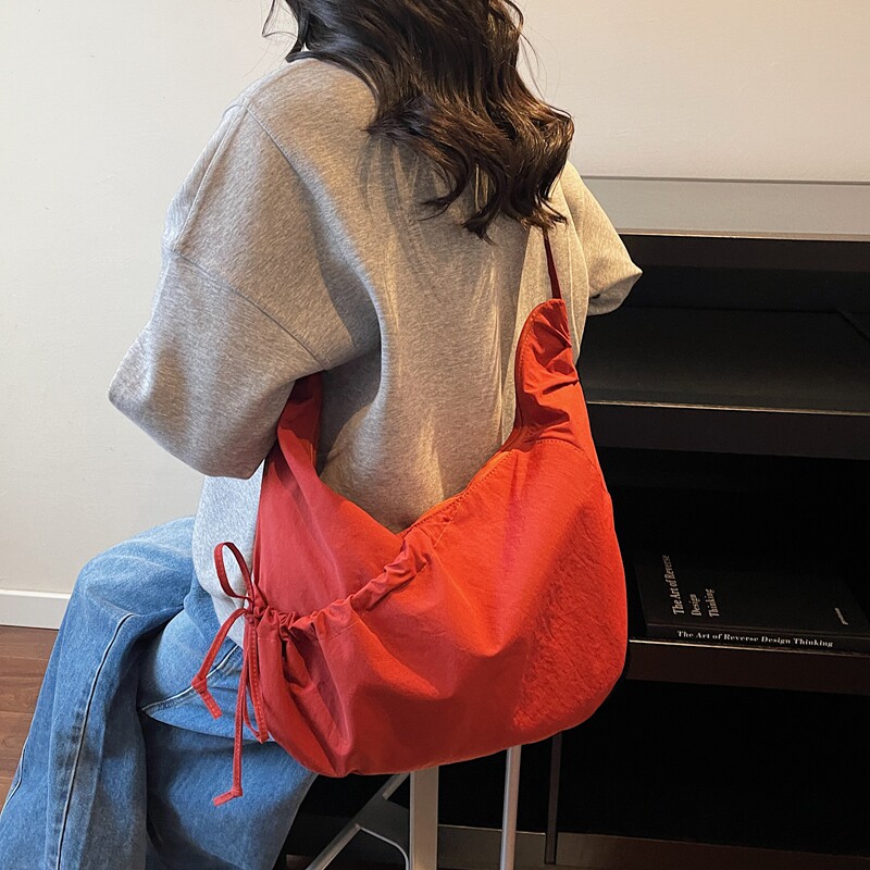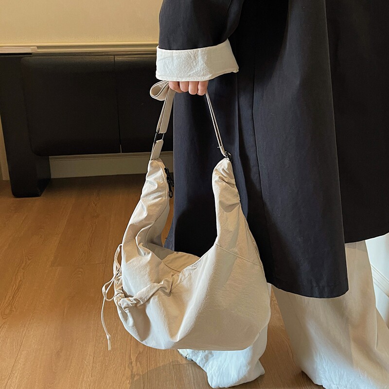 帆布包女大容量2026新款夏季百搭小众设计单肩斜挎包高级感饺子包