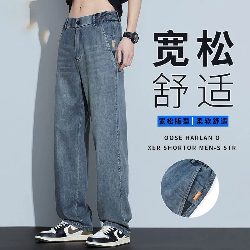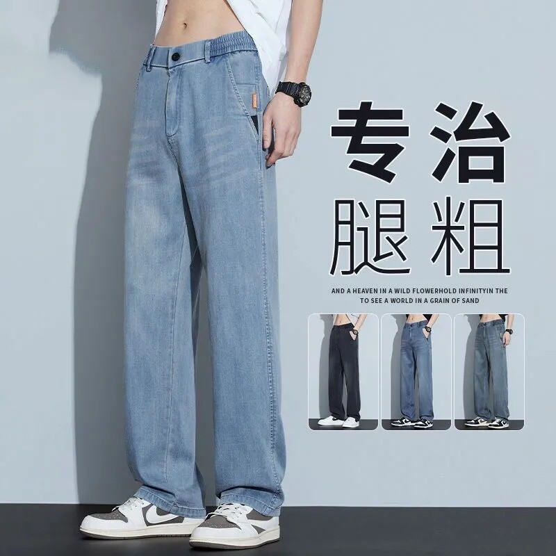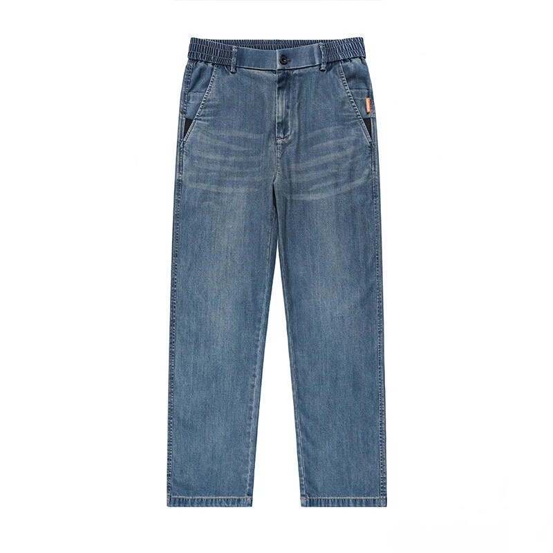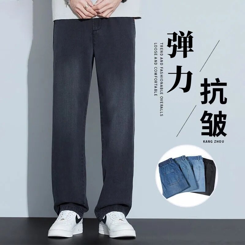弹力牛仔裤男款松紧腰直筒宽松阔腿夏季薄款透气休闲裤工装裤子男