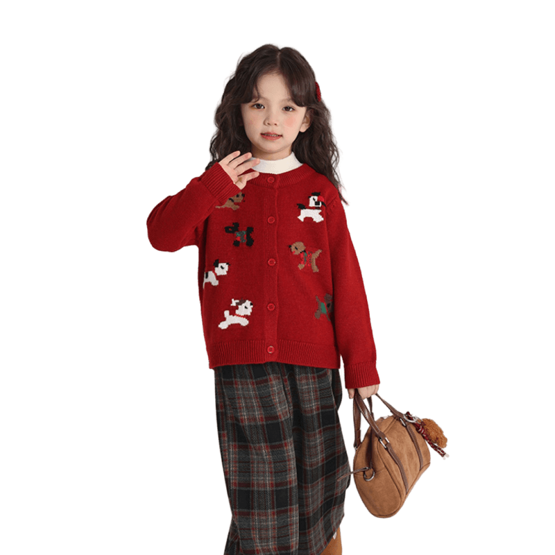 女童针织开衫拜年服2025新款儿童加厚毛衣红色新年秋冬卡通外套潮
