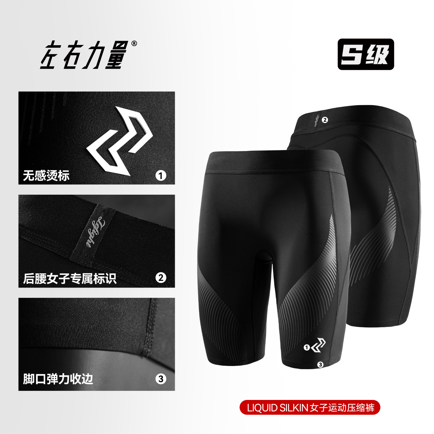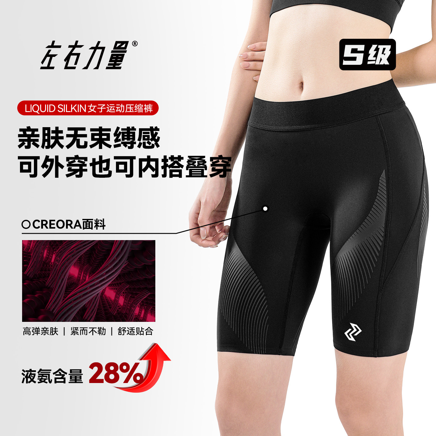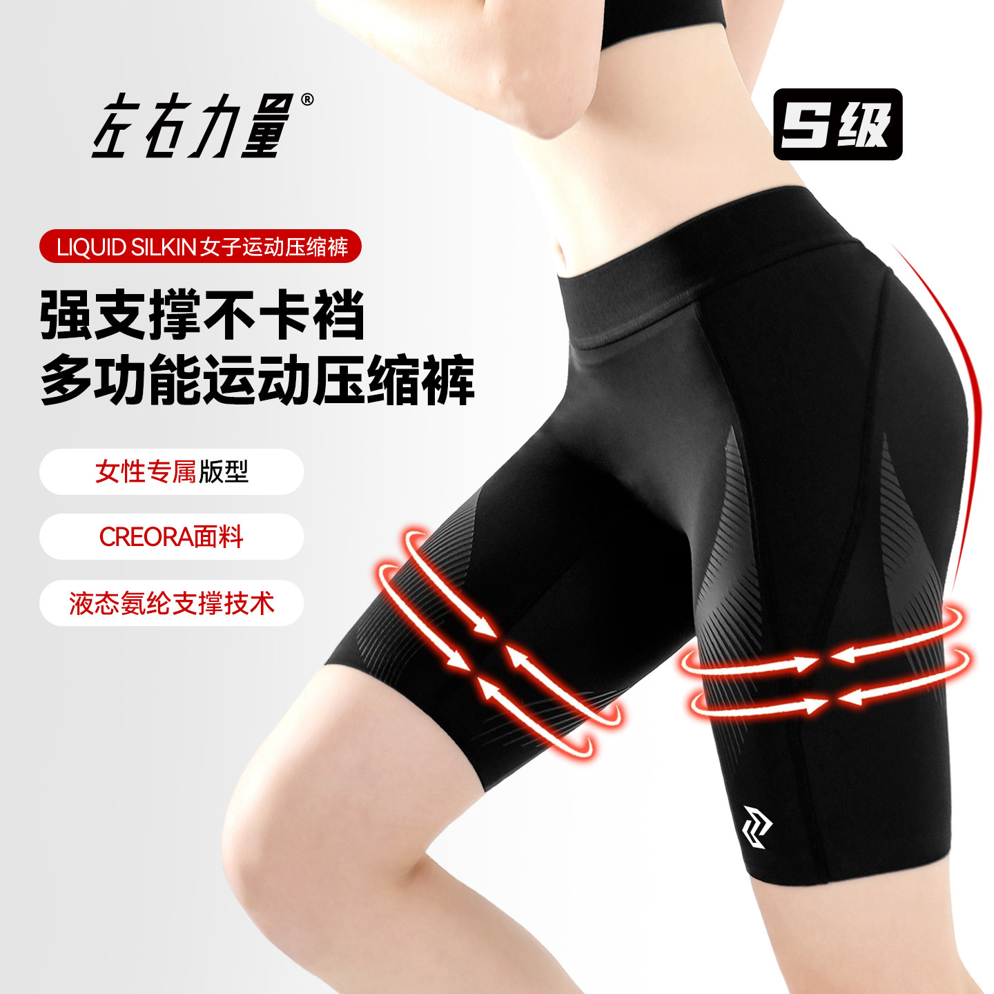 左右力量女子篮球专用打底紧身裤五分运动高弹压缩裤女生训练短裤