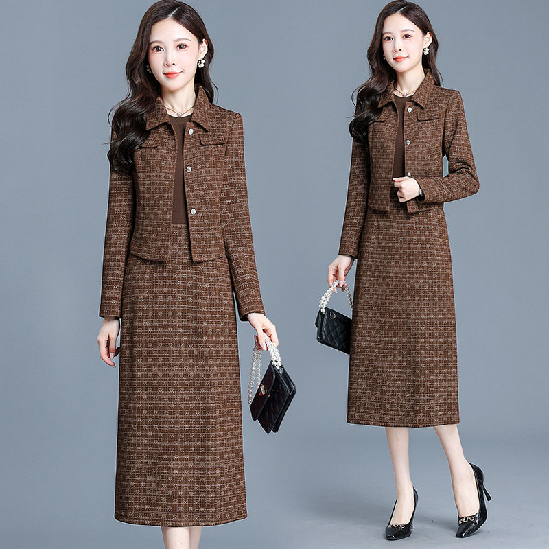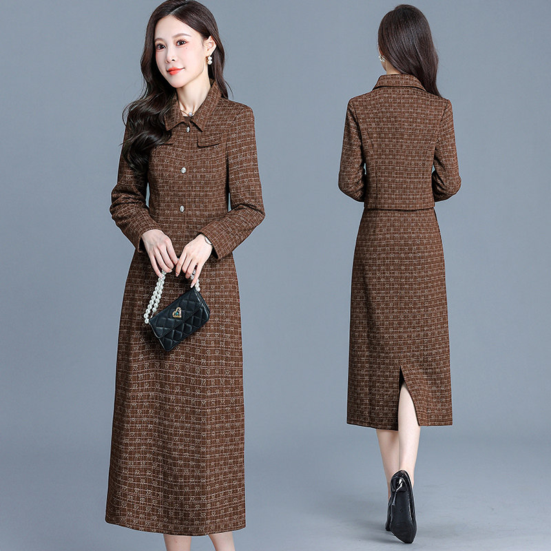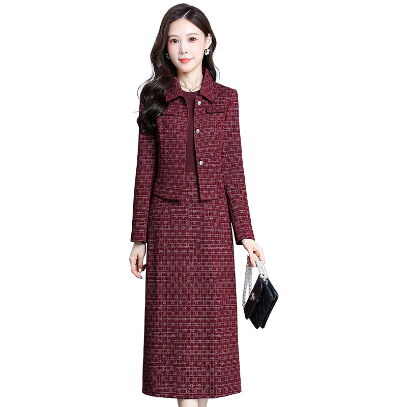 小香风红色两件套连衣裙女2026新款春季显瘦高腰A字裙气质套裙潮