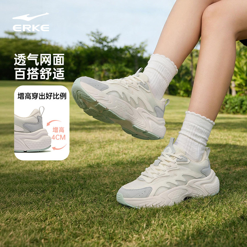 吴烟5|鸿星尔克女鞋老爹鞋夏季网面透气运动鞋增高休闲鞋新款厚底
