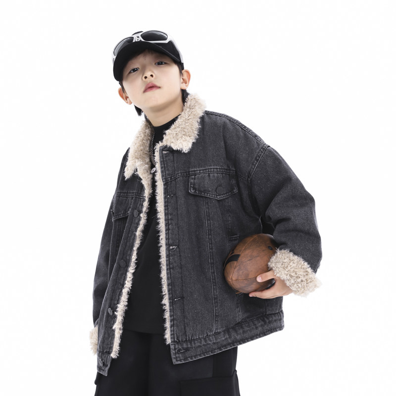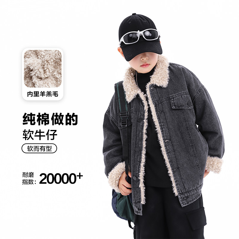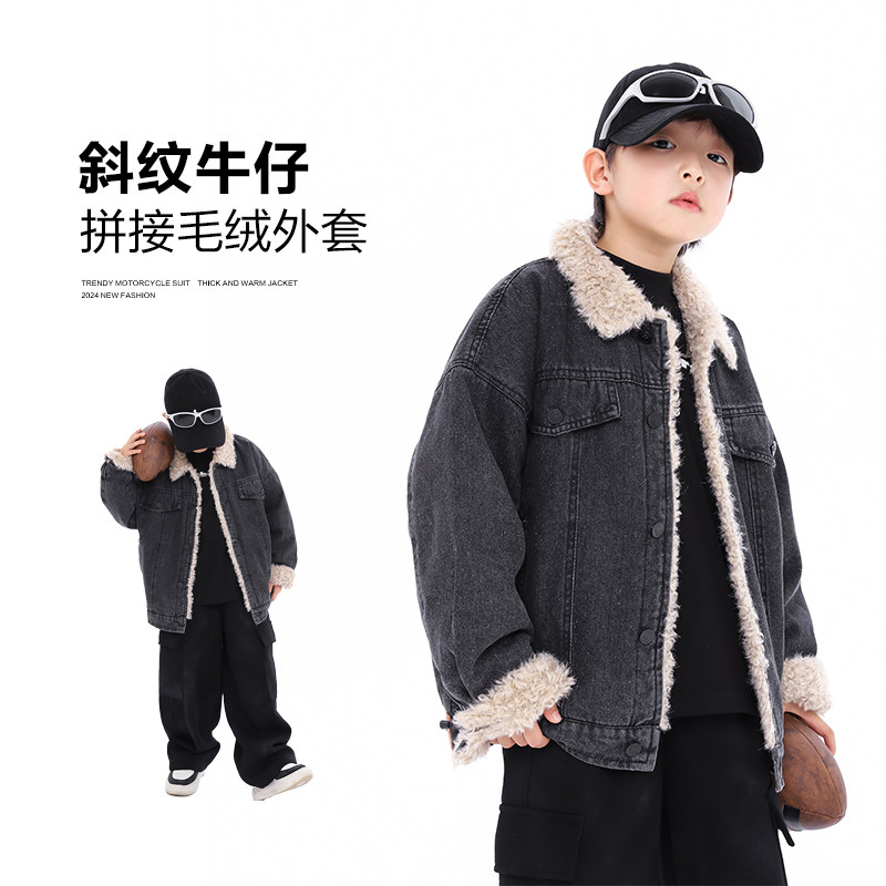 男童秋冬潮牌羊羔毛牛仔外套2026新款儿童男孩冬装加绒痞帅厚夹克