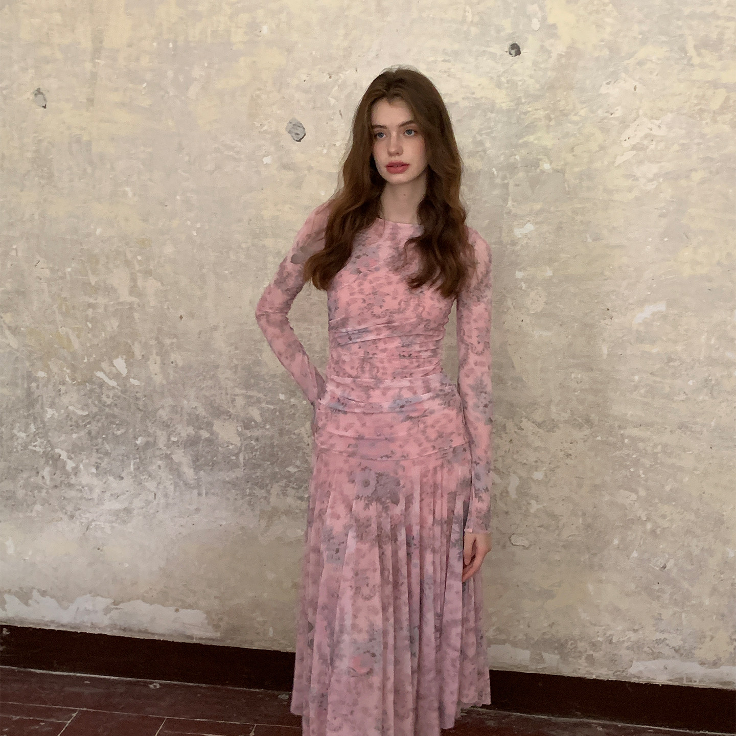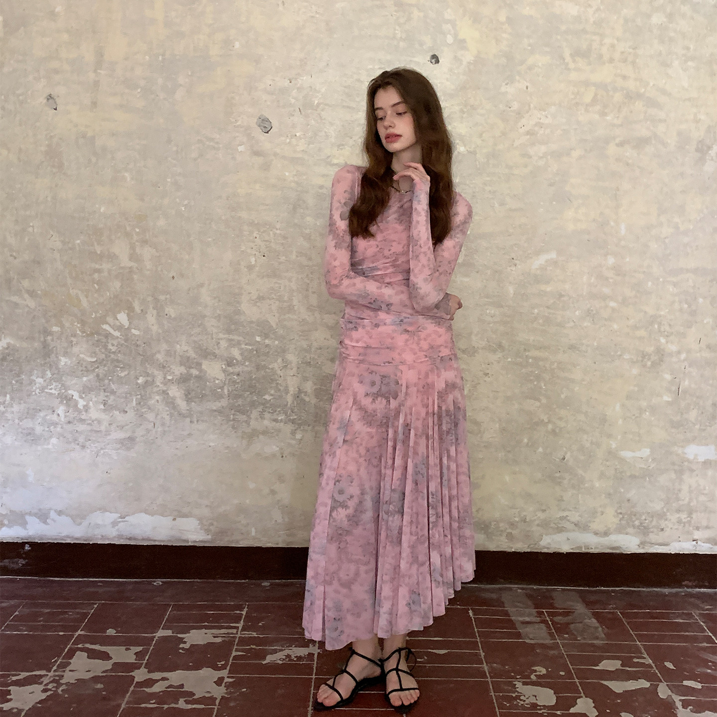 ZHUYIYI 早春法式新款薄纱碎花长袖春季连衣裙女修身显瘦设计感