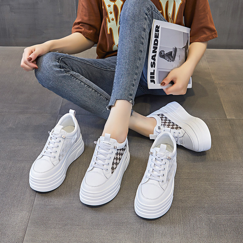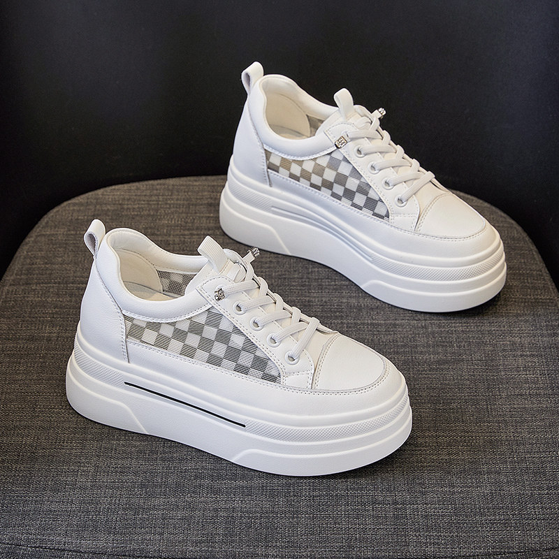 内增高女鞋8cm2025新款春夏真皮厚底显瘦小个子网纱运动鞋小白鞋
