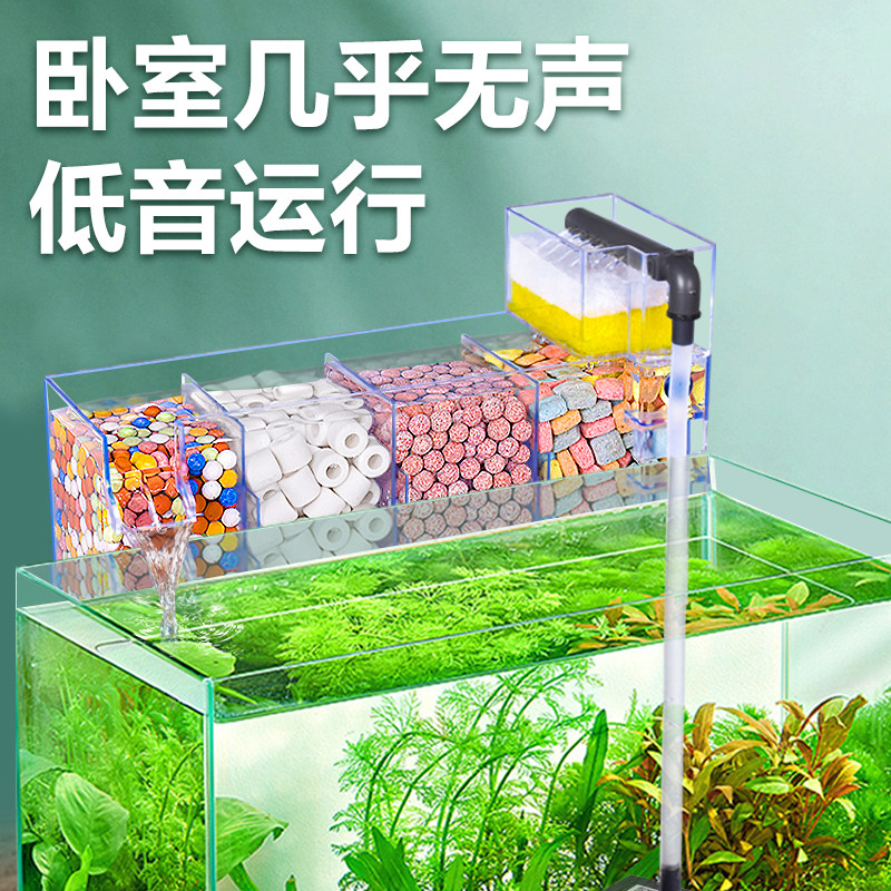 双层干湿分离小鱼缸过滤器乌龟过滤盒壁挂式净水循环三合一滴流盒